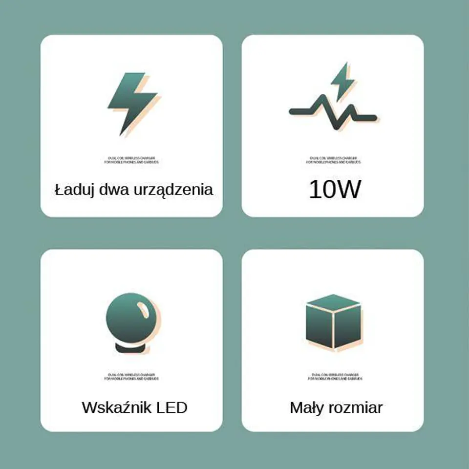 - Łatwe i szybkie automatyczne ładowanie dwóch urządzeń jednocześnie
