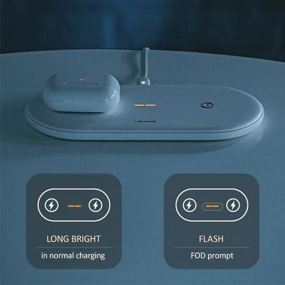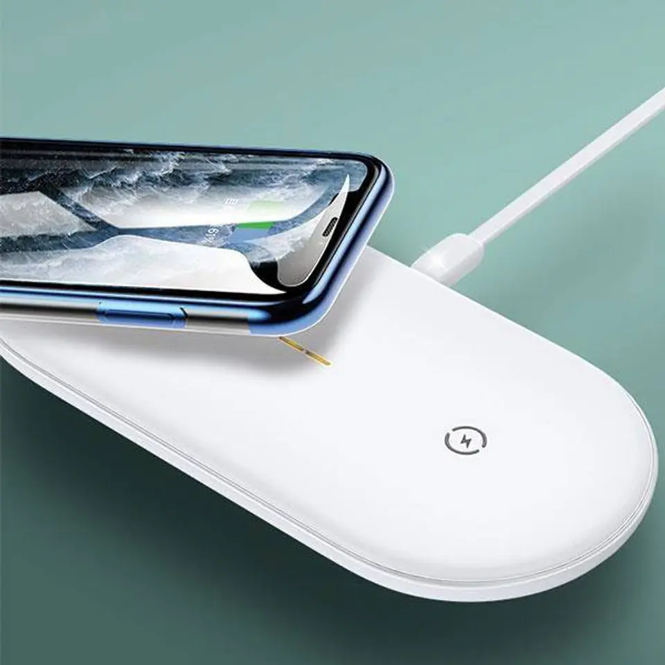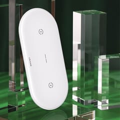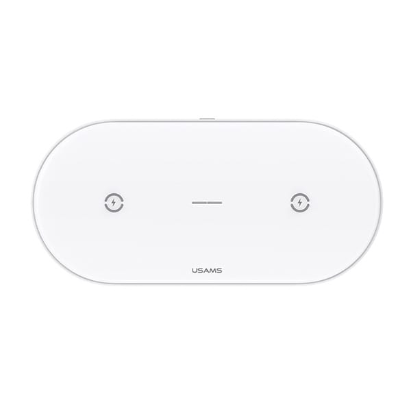 Usams US-CD120 Podwójna, bezprzewodowa ładowarka o stylowym wyglądzie, którą naładujesz dowolne urządzenie z funkcją ładowania indukcyjnego.