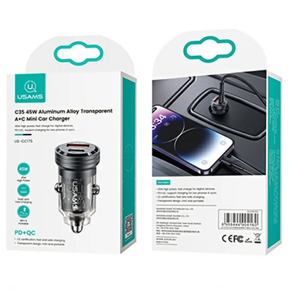 USAMS Ład. sam. C35 USB+USB-C 45WFast Charge czarny/black CC175CC01 US-CC175