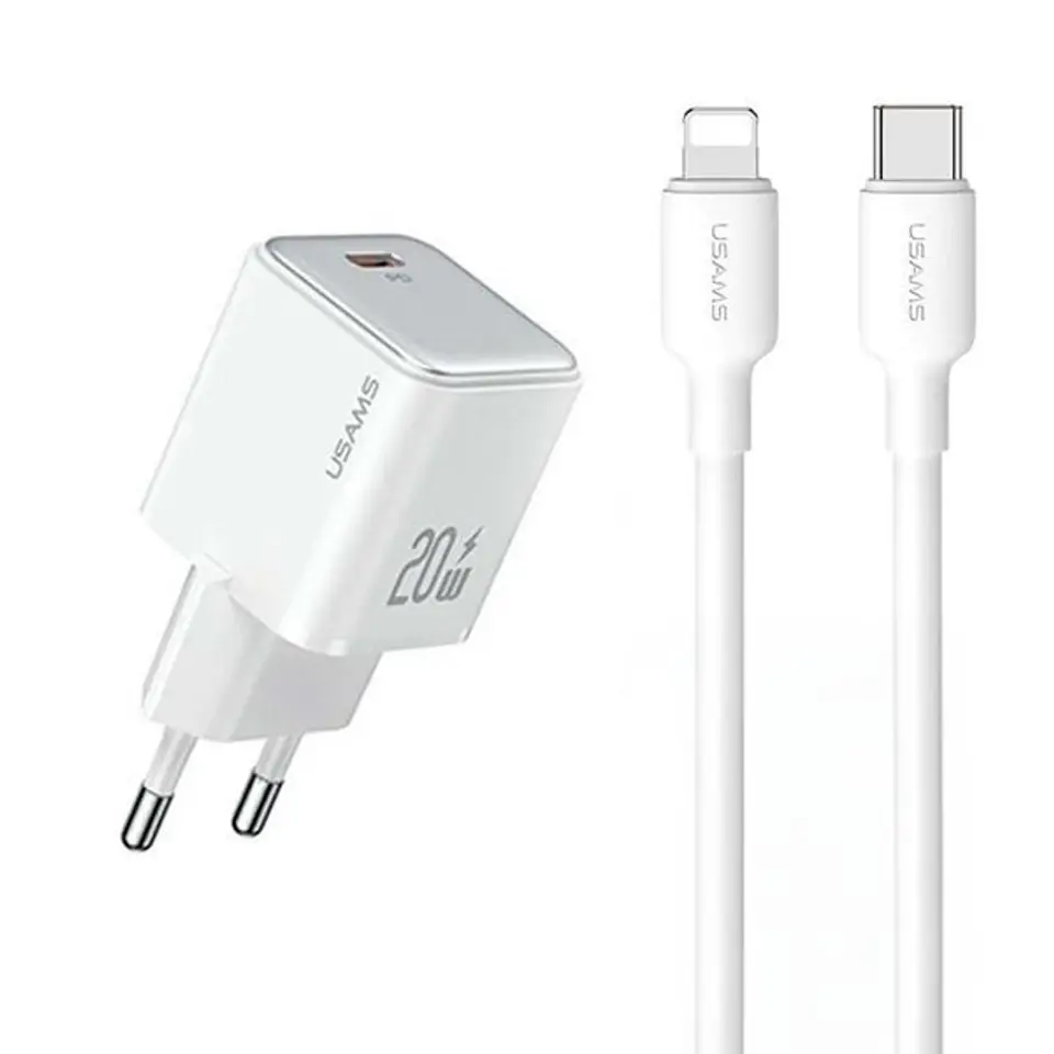USAMS Ład. siec. 1xUSB-C PD20WPD3.0 Fast Charging US-CC183 + kabel USB-C/Lightning US-SJ610 biały/white YX Series YXXLOGTC03