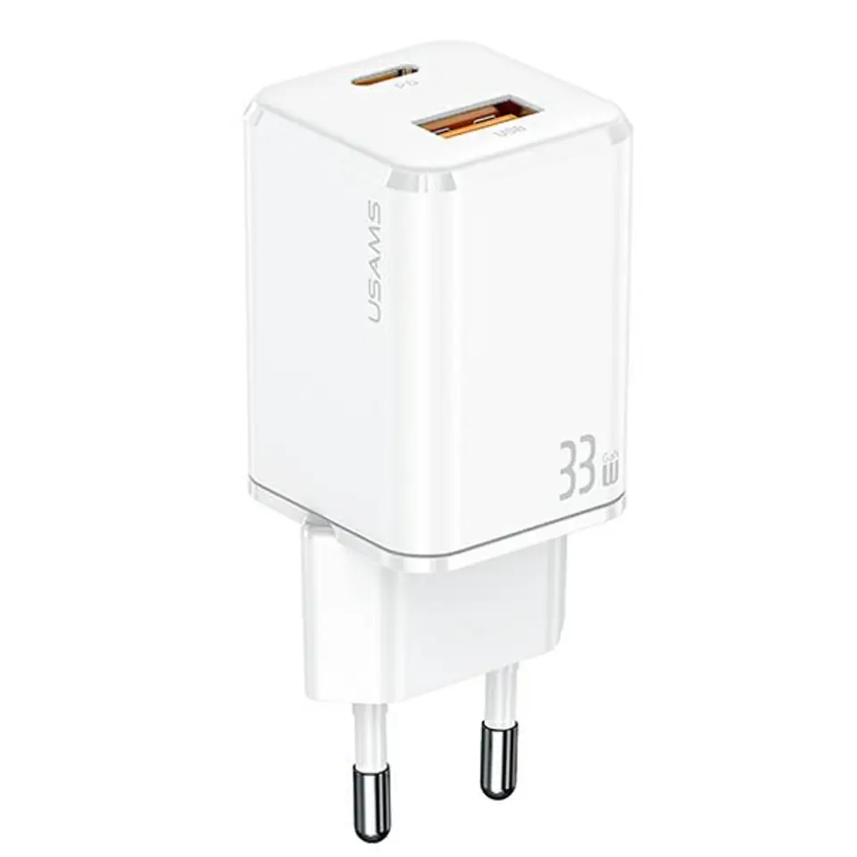 USAMS T43 US-CC144 33W to ładowarka sieciowa z szybkim i stabilnym ładowaniem, wyposażona w dwa porty: USB-C PD3.0 Fast Charging i USB Quick Charger