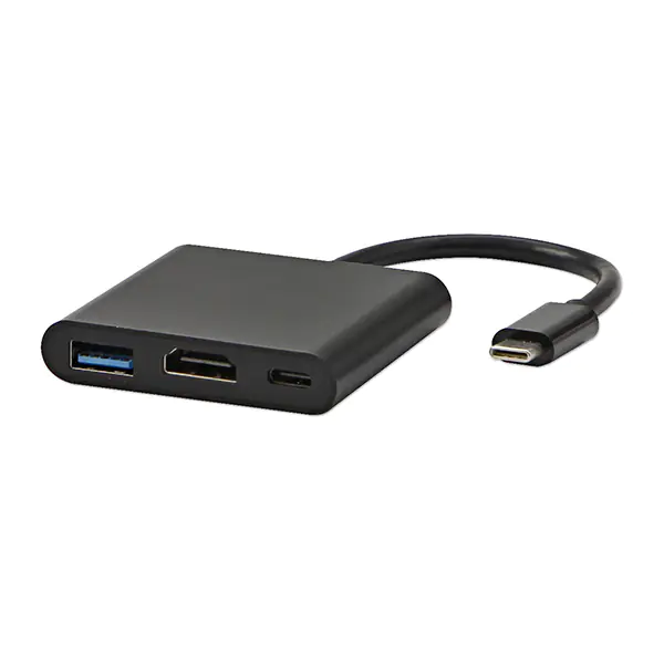 USB/Video Adapter + HUB, DP Alt Mode, USB C (M) - HDMI F + USB C F PD) + USB A F, czarny, All New box 4K2K@30Hz, USB Power Deli