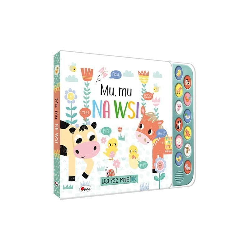 USŁYSZ MNIE MU MU NA WSI Książeczka sensoryczna - zawiera elementy dźwiękowe. Wspiera wszechstronny rozwój dziecka - pobudza ZMYSŁY WZROKU, DOTYKU I SŁUCHU. Prezentuje 12 DŹWIĘKÓW, które można spotkać na wsi. Zawiera krótkie teksty i urocze ilustracje. Książka zabiera małych czytelników NA WIEŚ. Dzieci znajdą w niej krótkie teksty. Wyróżnikiem publikacji jest aż 12 różnorodnych DŹWIĘKÓW. Dzięki niej maluch dowie się, jakie dźwięki wydają krowa, kurczątko czy pies. Książka: -działa na RÓŻNE ZMYSŁY: WZROK, DOTYK, SŁUCH -zapoznaje z dźwiękami spotykanymi NA WSI -rozwija WYOBRAŹNIĘ -wzbogaca SŁOWNICTWO Usłysz mnie! Seria książeczek SENSORYCZNYCH przeznaczona dla młodszych dzieci. Wprowadza w świat różnorodnych dźwięków. Uwagę przyciągają SYMPATYCZNE ILUSTRACJE I KRÓTKIE TEKSTY. Format: 263 x 212 mm Oprawa: twarda + mechanizm dźwiękowy Objętość: 10 stron