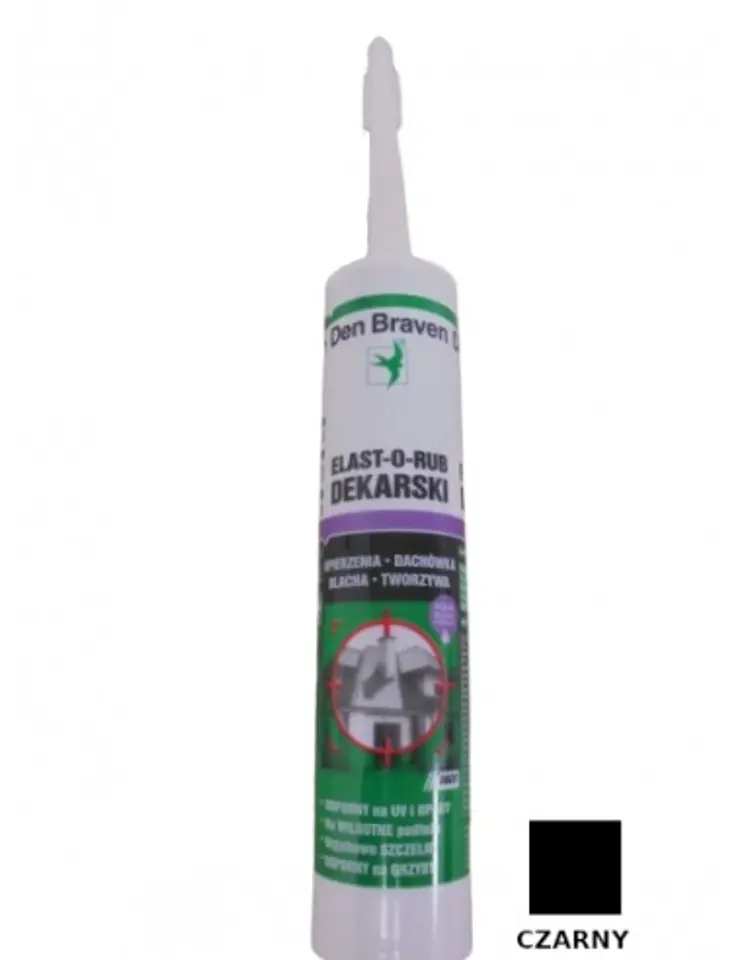 Den Braven Elast-O-Rub Uszczelniacz Dekarski to trwale plastyczno-elastyczny, kauczukowy uszczelniacz dekarski. Idealny do uszczelniania pokryć, rynien i obróbek z blachy. Nadaje się do użytku w dekarstwie. Usuwa przeciek wody. Łatwy w użyciu, każdy majsterkowicz sobie poradzi z aplikacją.