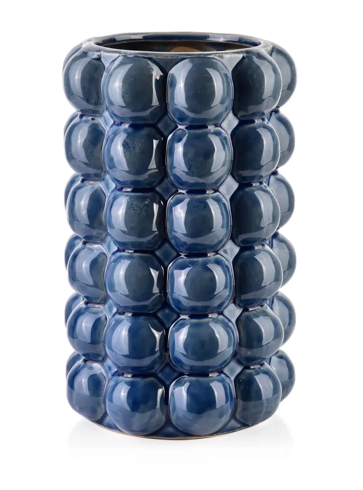 VALA BLUE Przepiękny Ceramiczny Wazon z Bąblami. Odkryj unikatowe piękno i elegancję wazonu VALA BLUE. Mistrzostwo ceramiki, które pozwoli Ci nadać wyjątkowego charakteru każdemu wnętrzu. Nasz ceramiczny wazon VALA BLUE to prawdziwe dzieło sztuki, idealne dla wszystkich, którzy cenią sobie oryginalność i ponadczasowy styl. Kluczowe Cechy to Wyjątkowa Estetyka: Wazon VALA BLUE wyróżnia się niepowtarzalnym wzorem z bąblami, który przyciąga wzrok i dodaje uroku.Wysoka Jakość Ceramiki: Starannie wyselekcjonowane materiały gwarantują trwałość oraz wytrzymałość, pozwalając cieszyć się pięknem wazonu przez wiele lat.Wszechstronne Zastosowanie: Idealny na kwiaty świeże, jak i suszone kompozycje, ale równie pięknie prezentuje się jako samodzielny element dekoracyjny.Rękodzieło: Każdy wazon jest unikatowy . wykonany ręcznie przez doświadczonych rzemieślników, co sprawia, że żaden wzór nie powtórzy się dokładnie.Ożywienie Przestrzeni: VALA BLUE doskonale odnajdzie się w różnorodnych aranżacjach, od nowoczesnych po klasyczne, wniesie świeżość i oryginalność do każdego pomieszczenia.Zaprzyjaźnij się z wyjątkowym stylem i niebanalnym designem. VALA BLUE to wazon, który nie tylko urozmaici Twoje domowe otoczenie, ale również stanie się wyrafinowanym akcentem przyciągającym uwagę Twoich gości. Spraw, aby twój dom zabłysnął indywidualnością dzięki VALA BLUE.wymiary: 16x16xh26,5cmwaga: 1,67kgzapakowany jednostkowo w brązowy karton