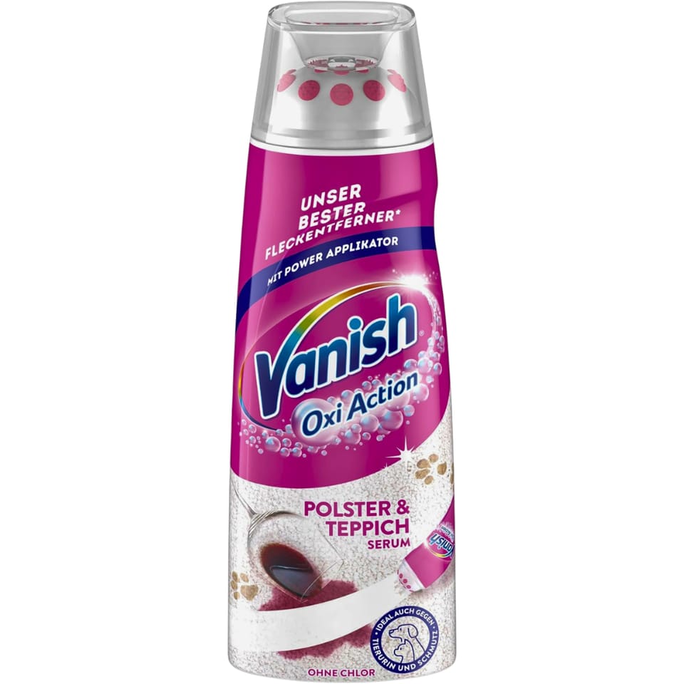 Vanish Oxi Action to skuteczne serum do usuwania plam z dywanów i tapicerki, które pozwala na precyzyjne czyszczenie nawet najbardziej uporczywych zabrudzeń. Idealne do stosowania punktowego w domu i samochodzie.