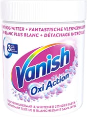 Vanish Oxi Action White to skuteczny odplamiacz do prania białych tkanin, który usuwa nawet uporczywe zabrudzenia i pomaga przywrócić ubraniom ich nieskazitelną biel. Dzięki formule z aktywnym tlenem produkt działa głęboko w włóknach, eliminując plamy już od niskich temperatur.