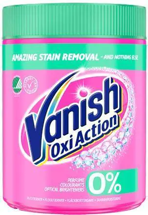Nowa formuła odplamiacza Vanish Oxi Action zwalcza wszystkie rodzaje plam - od tych najbardziej rzucających się w oczy, po te niemal niewidoczne. Vanish usuwa tłuste plamy, plamy z wina, plamy z potu, plamy z czekolady, plamy z herbaty, plamy z kawy, plamy z trawy, plamy z krwi, plamy z błota oraz zaschnięte plamy.