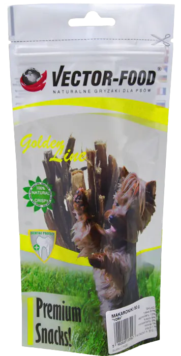 Delikatny, lekkostrawny, przysmak wieprzowy. Naturalnie podsuszane jelita, zachowują swoja naturalną miękkość i sprężystość. Polecane szczególnie dla szczeniąt i psów o drobnych pyskach.