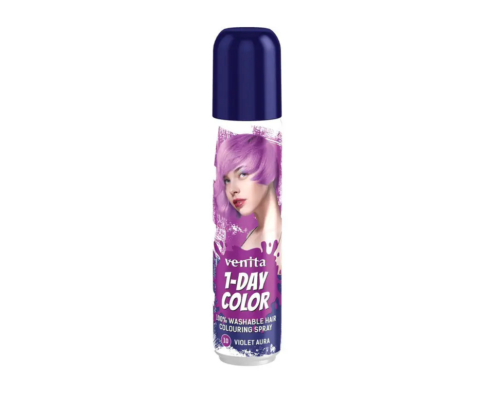 Zmywalny spray do szybkiej koloryzacji i stylizacji włosów, przeznaczony do kolorowych pasemek, ombre, zmiany koloru całych włosów lub malowania wybranych fragmentów np. przy pomocy szablonów. Dla uzyskania kontrastowych kolorów oraz podczas stosowania na ciemne włosy należy wcześniej wykonać podkład kolorem 1-DAY – ŚNIEŻNA BIEL.