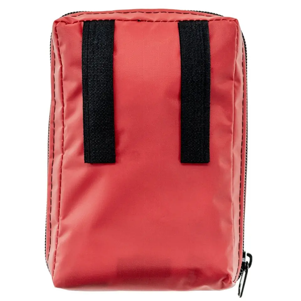 Osobista apteczka pierwszej pomocy, która bez problemu zmieści się w średniej wielkości plecaku lub damskiej torebce. Skład apteczki zamknięto w niewielkim pokrowcu. Wyposażono go w taśmy umożliwiające mocowanie do plecaka oraz zamknięcie na zamek błyskawiczny. Skład apteczki: Przylepiec DIN 13019-A, 5m x 25,cm Zestaw plastrów do składu DIN 13164 i DIN 1367 Opaska podtrzymujaca elastyczna 6 cm 2 szt. Opaska podtrzymująca elastyczna 8 cm Chusta trójkątna DIN 13168-D, 96cm x 96 cm x136cm, fizelinowa, biała 2 rękawice winylowe (1 para) Koc ratunkow 160 cm x 210 cm x, srebrny/złoty Dane techniczneKolor: czerwonyWymiary: 140 x 100 x 50 mm