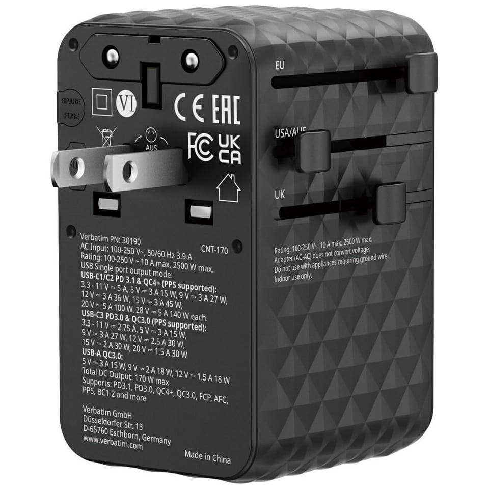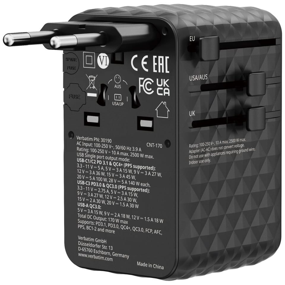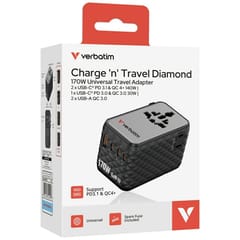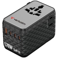 Typ Verbatim Adapter podróżny EU/UK/US GaN 1xUSB-A/3xUSB-C PD 170W