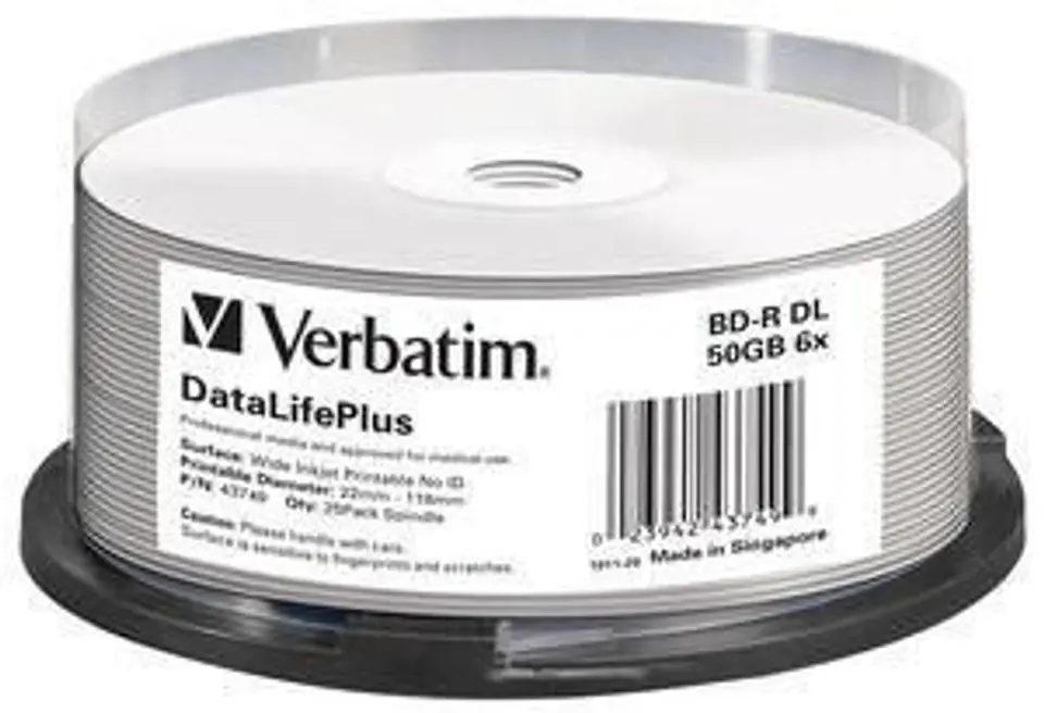 | Opis: | Verbatim BD-R DL 50GB 6X, 25 pack w. inkjet print., spindle |