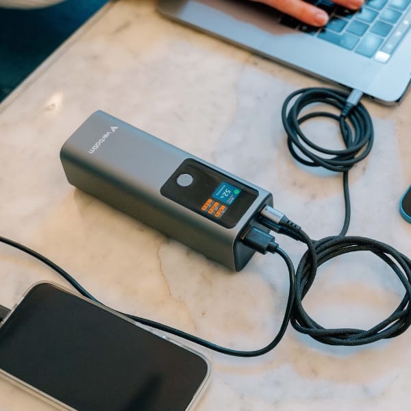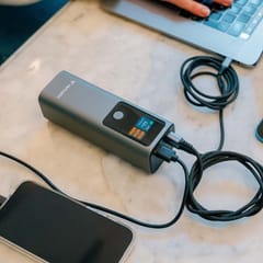Dzięki dwóm portom USB-C wspierającym Power Delivery 3.1 z maksymalną mocą do 140 W każdy, Charge n Go Power Bank bez trudu poradzi sobie z ładowaniem nawet najbardziej wymagających laptopów. Port USB-A obsługujący technologię Quick Charge 3.0 o mocy do 18 W pozwala na szybkie ładowanie dodatkowego urządzenia, takiego jak smartfon, słuchawki czy smartwatch. Możliwość ładowania trzech urządzeń jednocześnie sprawia, że power bank jest wszechstronnym narzędziem zarówno dla użytkownika indywidualnego, jak i całej grupy.