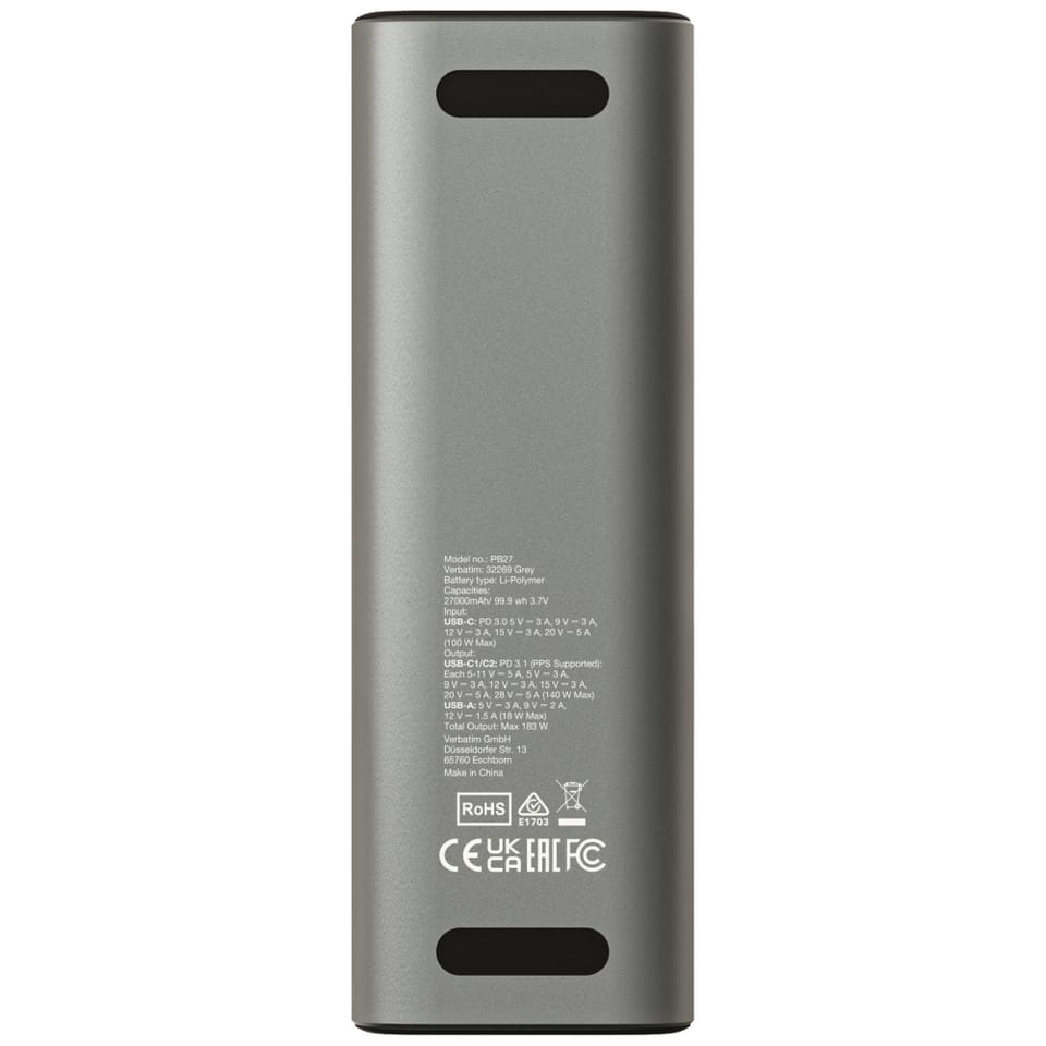 Verbatim Charge n Go Power Bank 27000mAh to zaawansowane, wysokowydajne źródło energii zaprojektowane z myślą o użytkownikach wymagających niezawodności i dużej pojemności. Z baterią o pojemności aż 27000 mAh urządzenie jest idealnym rozwiązaniem dla osób często podróżujących, pracujących mobilnie lub przebywających z dala od źródeł zasilania. Power bank umożliwia wielokrotne naładowanie smartfona, tabletu, laptopa czy innych urządzeń elektronicznych bez potrzeby dostępu do gniazdka elektrycznego.