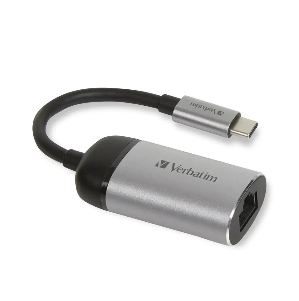 Verbatim USB-C TO GIGABIT ETHERNET ADAPTER 10 cm cable 49146, USB 3.2 Gen 1 (3.1 Gen 1) Type-C, RJ-45, 1000 Mbit/s, Black, Silver, Metal,