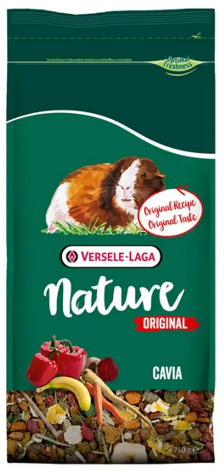 Nature Original Cavia to pełnowartościowa karma specjalnie dostosowana, aby zaspokoić całkowite zapotrzebowanie żywieniowe kawii domowych. Ta wysokiej jakości mieszanka smacznych składników zawiera wszelkie niezbędne składniki odżywcze, witaminy i minerały, których Twój pupil potrzebuje, aby prowadzić beztroskie życie i cieszyć się pełnią energii. Błonnik, zioła, warzywa i owoce zawarte w mieszance przyczyniają się do doskonałego trawienia, utrzymania dobrego stanu uzębienia, błyszczącej sierści i doskonałego zdrowia. Duża różnorodność składników gwarantuje dobry smak i doskonałe wchłanianie. Dzięki temu karma Nature Original to idealny wybór na codzienną porcję rozkoszy dla Twojej kawii domowej!
