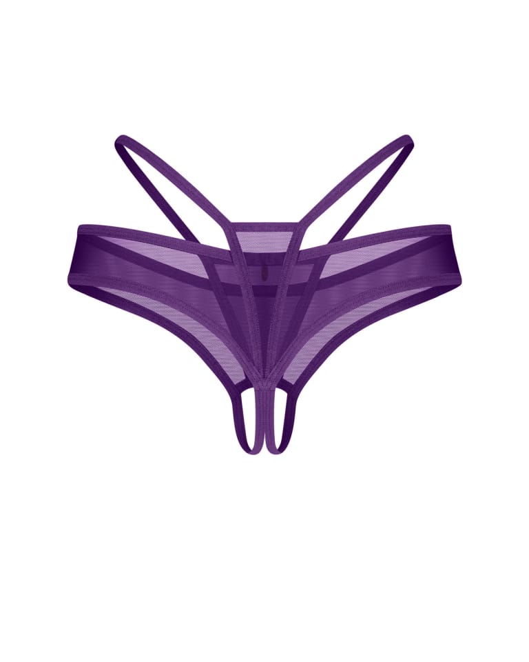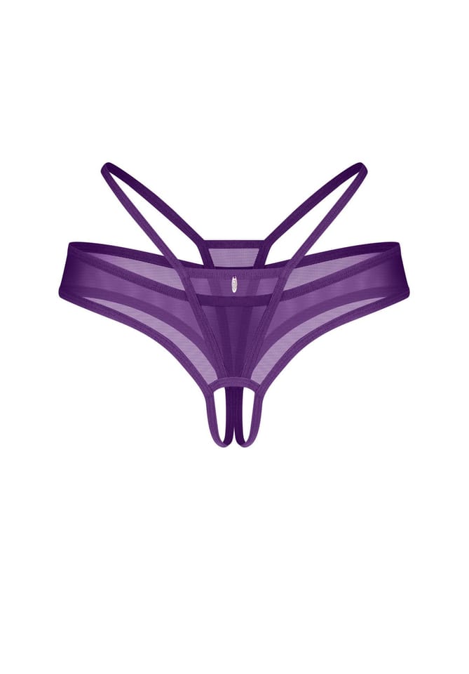 Fioletowy string bezkroczowy wykonany z delikatnej, przezroczystej siateczki w intensywnym, nasyconym odcieniu. Wielowymiarowy, paskowy design podkreśla biodra i pośladki, a srebrny charms z przodu dodaje subtelnego, a zarazem wyrazistego akcentu. uwodzicielski krój bezkroczowy przezroczysta siateczka w głębokim odcieniu fioletu wielowymiarowy design z paseczkami ozdobny srebrny charms (bez niklu) skład materiału: 94% poliamid, 6% elastan zaprojektowane w UE rozmiar: S/M Produkt nie jest odpowiedni dla dzieci poniżej 3 roku życia – ryzyko zadławienia przez małe elementy.
