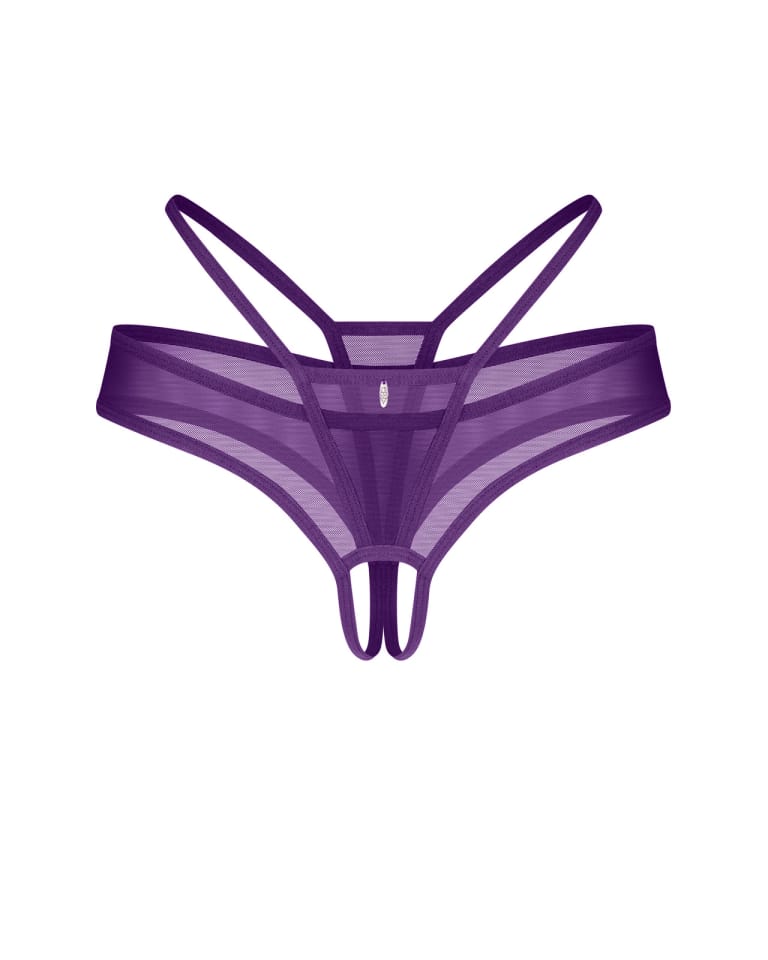 Fioletowy string bezkroczowy wykonany z delikatnej, przezroczystej siateczki w intensywnym, nasyconym odcieniu. Wielowymiarowy, paskowy design podkreśla biodra i pośladki, a srebrny charms z przodu dodaje subtelnego, a zarazem wyrazistego akcentu. uwodzicielski krój bezkroczowy przezroczysta siateczka w głębokim odcieniu fioletu wielowymiarowy design z paseczkami ozdobny srebrny charms (bez niklu) skład materiału: 94% poliamid, 6% elastan zaprojektowane w UE rozmiar: S/M Produkt nie jest odpowiedni dla dzieci poniżej 3 roku życia – ryzyko zadławienia przez małe elementy.