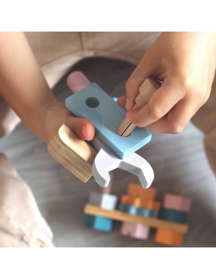Całość wykonana została z drewna bukowego i pomalowana nietoksycznymi farbami o żywych barwach, które przyciągną wzrok oraz zachęcą do zabawy dając jednocześnie mnóstwo radości z zabawy.