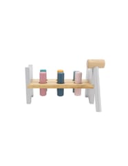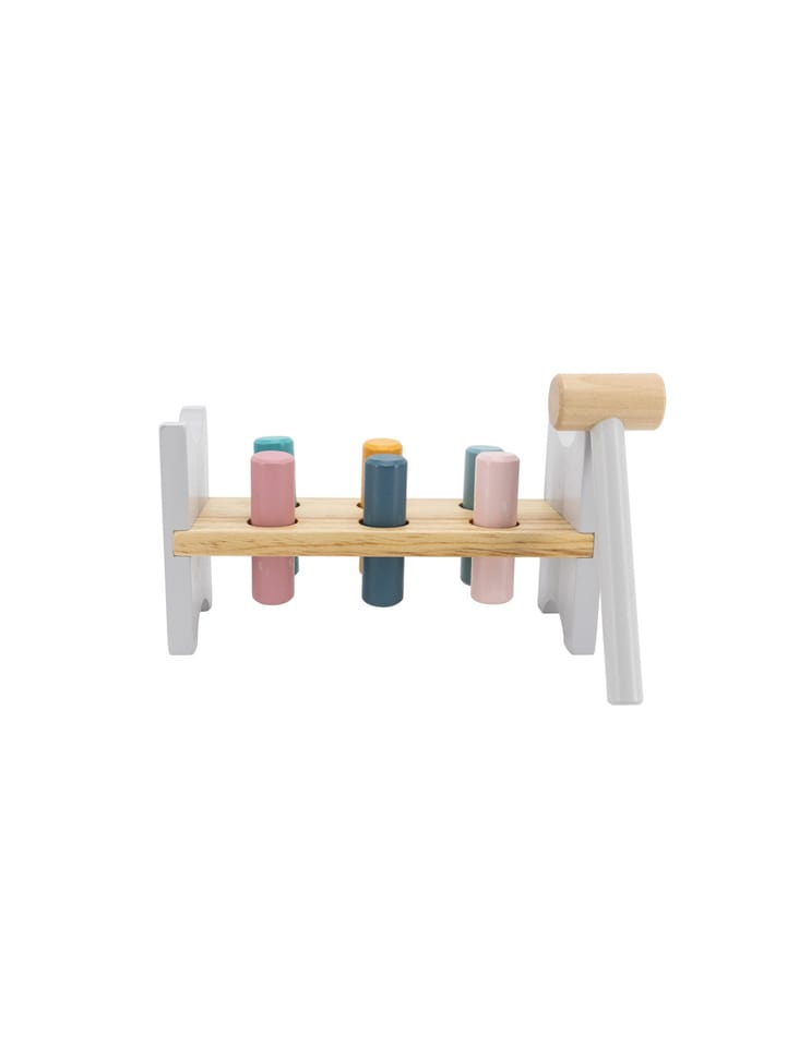 Kolorowy przebijak od firmy Viga to zabawka którą pokocha każde dziecko. Delikatne pastelowe kolory oraz wygodny w uchwyceniu młotek zachęcą każdego malucha do zabawy. Przy okazji zabawka poprawi koordynację wzrokowo-ruchową jak i pomoże ćwiczyć sprawność rączek oraz rozwija wyobraźnię i uczy kreatywnego myślenia. Zadaniem dziecka jest wbić wszystkie kołki w otwory, aby przeszły na drugą stronę ramy. Czynność można powtarzać poprzez obracanie zabawki.Zestaw zawiera :podstawkę,6 kolorowych bolców,młoteczek do wbijania