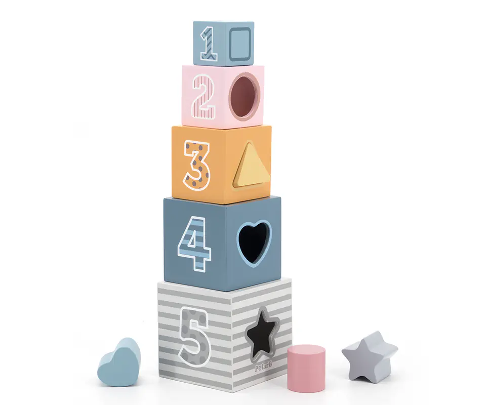 Kolorowa piramidka edukacyjna z sorterem kształtu od firmy Viga to zabawka którą pokocha każde dziecko. Delikatne pastelowe kolory oraz estetyka wykonania zachęcą każdego malucha do zabawy. Edukacyjny piramidka z sorterem wspomoże rozwój koordynacji wzrokowo-ruchowej jak i pomoże ćwiczyć sprawność rączek. Zabawka rozwija wyobraźnię i uczy kreatywnego myślenia, daje dziecku wiele wariantów zabawy. Zadaniem dziecka jest dopasowywanie ustawienie „kubeczków” jeden na drugim a następnie dopasowanie kształtów klocków do otworów.