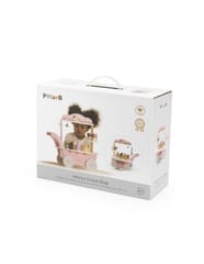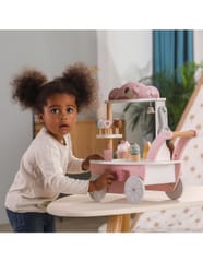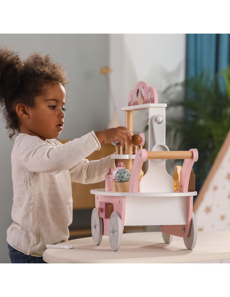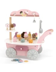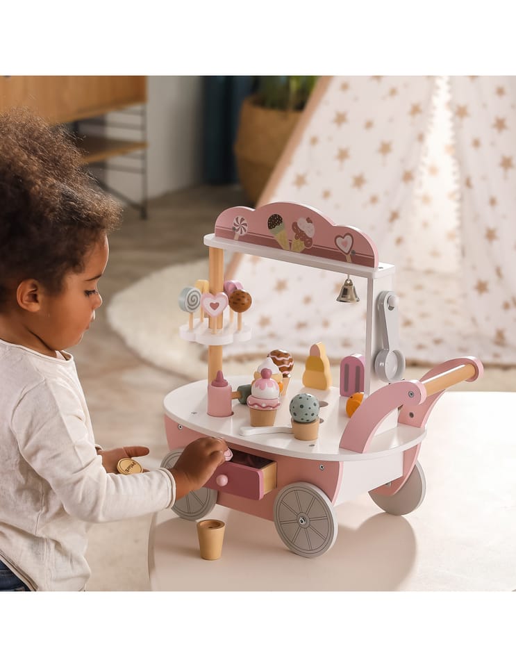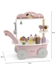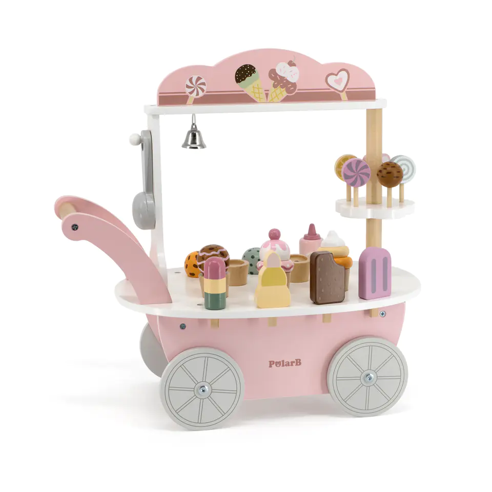 Przedstawiamy drewnianą zabawkę marki VIGA – wózek sprzedawcy lodów z serii POLAR BEAR. Jest idealny dla dziecka od 3 roku życia, znakomicie wspiera je w rozwoju wyobraźni, zabawy w odgrywanie postaci, koncentracji, motoryki, zręczności i zdolności poznawczych. Zestaw posiada w pełni wyposażony wózek z wystawą dla sprzedawanych wyrobów. Gałki można dowolnie komponować w desery lodowe z dodatkami. Zabawka posiada dodatkowo wiele innych akcesoriów w postaci lizaków, łyżki do lodów, monet, dzwonka jak również lodów na patyku – wszystko co potrzebne do zabawy w lodziarza-cukiernika.Całość wykonana została z drewna bukowego i pomalowana nietoksycznymi farbami o stonowanych barwach, które przyciągną wzrok oraz zachęcą do zabawy dając jednocześnie mnóstwo radości z zabawy. Farby są w 100% bezpieczne, spełniają normy bezpieczeństwa EN71 i ASTM.Zabawka jest zapakowana w kolorowe opakowanie. Dzięki estetycznemu opakowaniu zabawka jest idealna na prezent.Zabawka przeznaczona dla maluchów powyżej 36. miesiąca życia. Cała seria zabawek POLAR BEAR została stworzona przez firmę VIGA aby sprostać oczekiwaniom rodziców i dzieci w doskonaleniu procesu ich rozwoju poprzez zabawę. DANE TECHNICZNE: Wymiar produktu:dł: 440mm x wys: 440mm x szer: 260mmWymiary opakowania:dł: 418mm x wys: 215mm x szer: 283mm Opisy