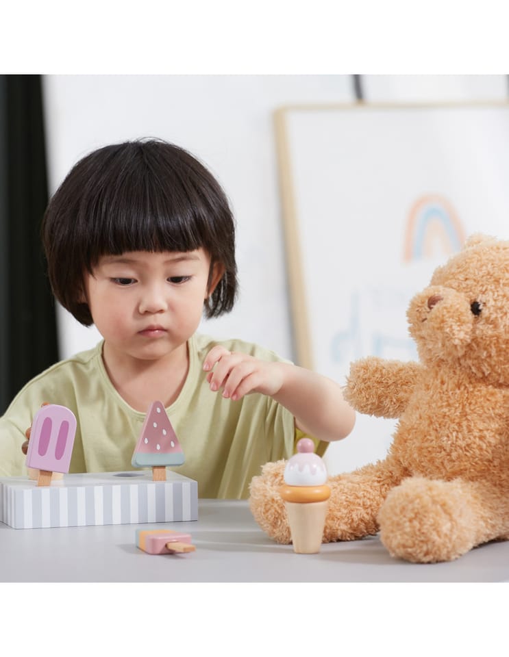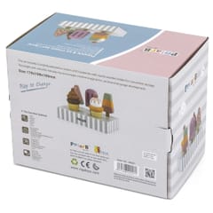 Całość zapakowana w elegancki kartonik – idealny na prezent. Zestaw pozytywnie wpływa na zdolności i motorykę dziecka, ćwiczy precyzję oraz cierpliwość. Zabawa z zestawem będzie wciągająca zarówno dla dzieci jak i dla dorosłych. Odgrywanie ról podczas zabawy w sklepik z lodami lub kawiarnię będzie zabawne oraz pomoże rozwijać umiejętności społeczne i interpersonalne.