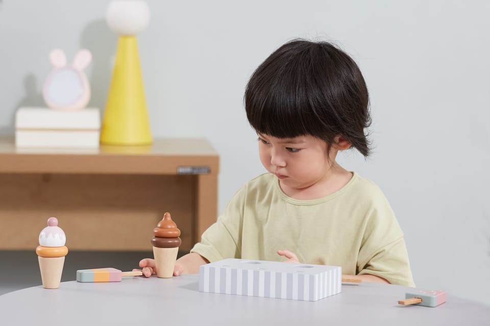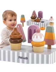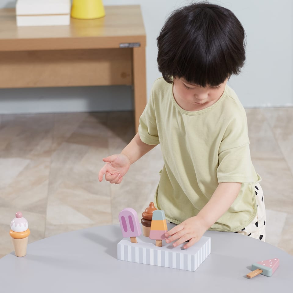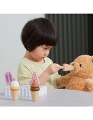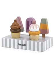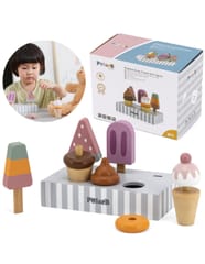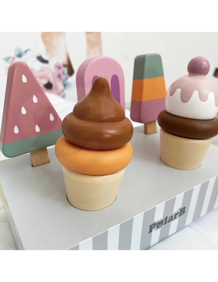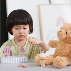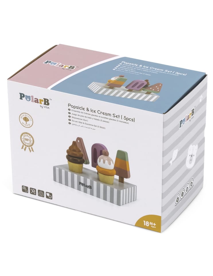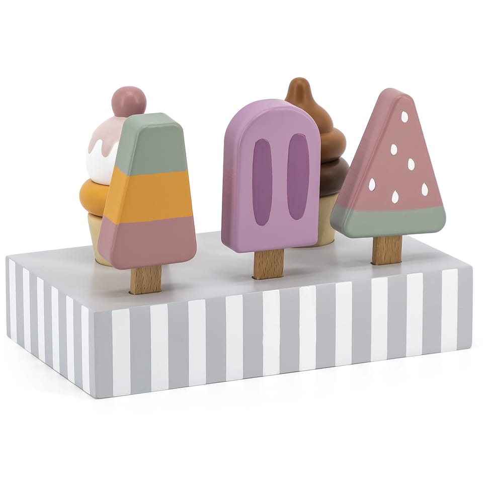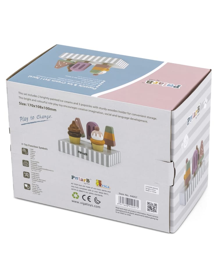 Uroczy zestaw do lodów marki Viga. Już dziś możesz delektować się lodami każdego dnia. Zestaw zawiera lody na patyku oraz lody w wafelku które urozmaicą posiadane zabawki drewniane z serii gotowanie jak i przyjęcie. Zestaw zawiera podstawę która ułatwia przechowywanie lodów oraz doskonale je eksponuje.