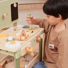 To interaktywny zestaw, który umożliwia dzieciom wcielenie się w rolę małego majsterkowicza i rozwijanie swoich umiejętności manualnych i twórczej eksploracji. Dzięki niemu dzieci mogą rozwijać swoją wyobraźnię i zdolności techniczne. Jest to również doskonała zabawka do wspólnej zabawy, która zachęca do interakcji i współpracy między dziećmi.