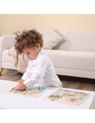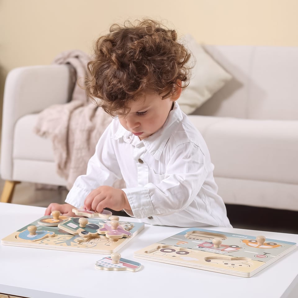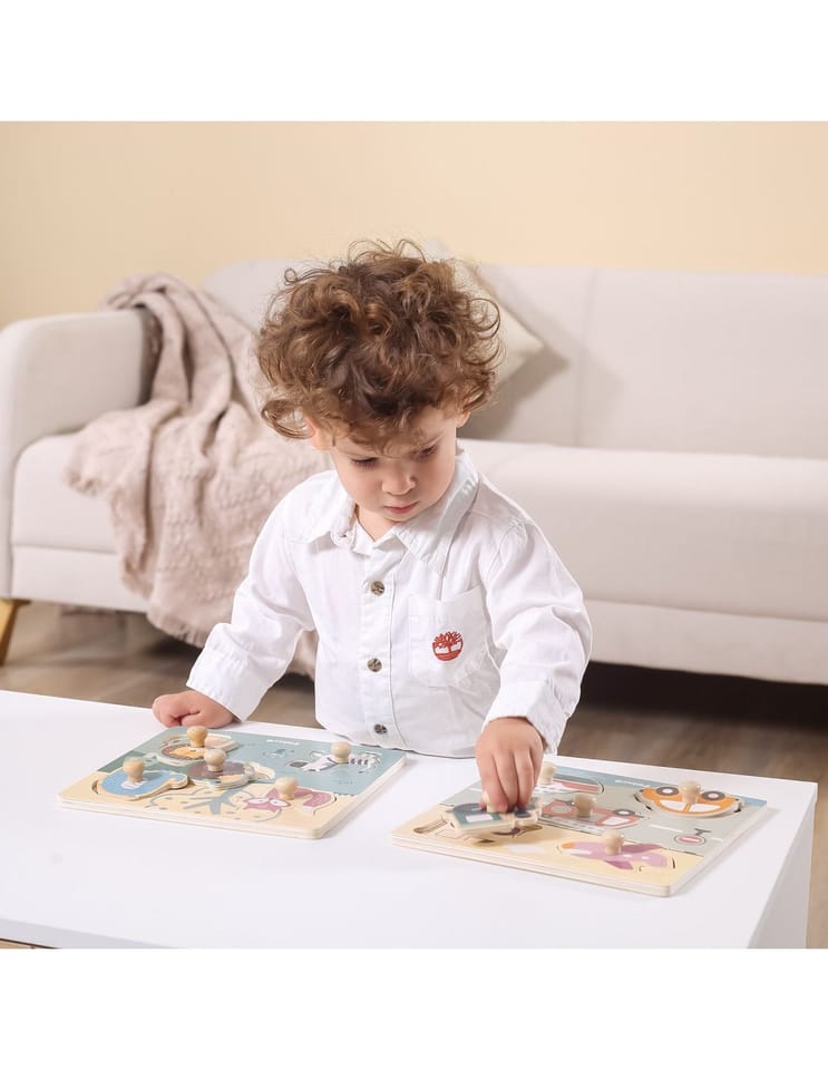 Elementy puzzli są wyposażone w drewniane kołeczki, które ułatwiają maluchowi chwytanie puzzli i umieszczanie ich w odpowiednich miejscach na podstawce. To doskonały sposób na rozwijanie motoryki oraz koordynacji ręka-oko. Zabawa tą układanką nie tylko bawi, ale również pomaga rozwijać logiczne myślenie u dziecka, łącząc zabawę z nauką. Wspólna zabawa z puzzlami to doskonałe narzędzie do rozwijania wyobraźni i przygotowania dziecka do przyszłej edukacji przedszkolnej.