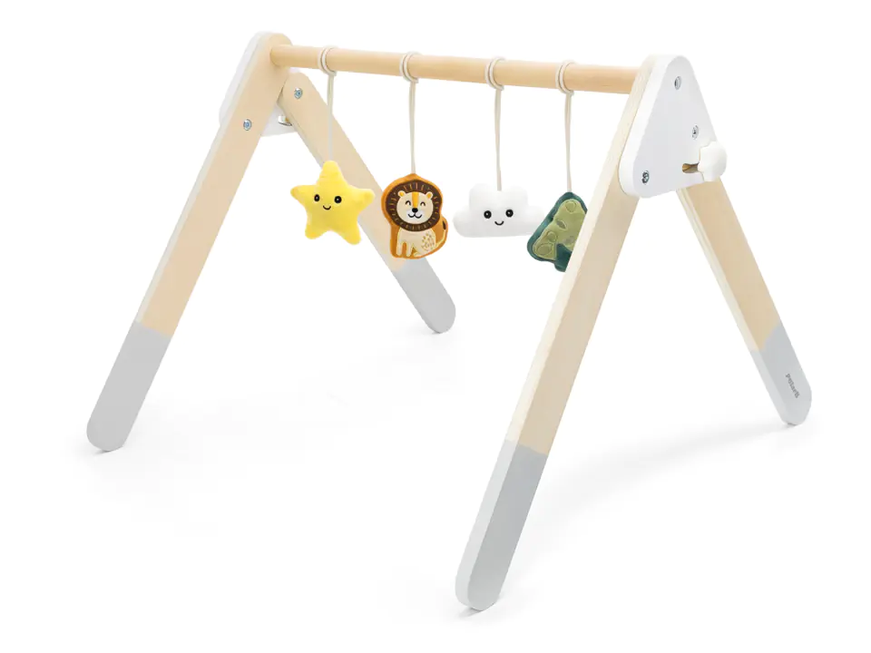 Pałąk z zabawkami do postawienia na podłodze, w łóżeczku czy na macie. Zawieszone pluszowe zabawki zachęcają do sięgania po nie co najmłodsi chętnie robią – zawieszki piszczą, grzechoczą i szeleszczą.