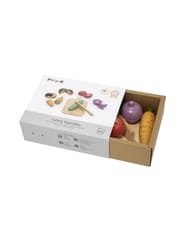 Zestaw do krojenia na desce- warzywa od firmy Viga to idealna zabawka, która pobudzi wyobraźnię Waszego dziecka. Drewniane zabawki w formie różnorodnych warzyw mogą być również wykorzystane jako materiał wizualny na zajęciach z dziećmi w grupie i w domu. Podczas kiedy rodzic będzie robić posiłek dla całej rodziny, nasza mała kucharka lub kucharz przygotują warzywną sałatkę z ulubionymi przez siebie dodatkami dla swoich lal i misiów. Dzięki bezpiecznemu nożykowi, który jest wykonany z drewna, dziecko z łatwością „pokroi” pieczarkę, ogórka czy pomidorka. Podczas wspólnej zabawy, każdy rodzic będzie mógł nauczyć dziecko jak posługiwać się w przyszłości ostrymi akcesoriami kuchennymi. Dodatkową, zaletą jest fakt, że wszystkie produkty połączone są rzepami co daje niekończącą się zabawę. Wszystkie mają wyrafinowany i realistyczny wygląd. Po skończonym śniadaniu można je z powrotem połączyć.