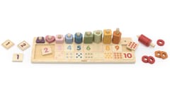 „NAUKA KREATYWNEGO LICZENIA” to idealna zabawka dla dziecka, które w wieku 3 lat rozwija się bardzo szybko. Przy pomocy liczydła kreatywnego nauka liczenia będzie prosta i przyjemna. Dzięki zastosowaniu kolorowych koralików, które należy umieścić na odpowiednich paliczkach, dziecko szybko przyswoi podstawy matematyki – dodawanie odejmowanie i cyfry. Zabawka zapewnia wielogodzinną naukę poprzez zabawę.Składa się z 55 koralików, 20 klocków z numerkami i figurami geometrycznymi, podstawy i 10 kołeczków.Zabawka jest zapakowana w kolorowe opakowanie. Dzięki estetycznemu opakowaniu zabawka jest idealna na prezent! Całość wykonana została z drewna bukowego i pomalowana nietoksycznymi farbami o stonowanych barwach, które przyciągną wzrok oraz zachęcą do zabawy dając jednocześnie mnóstwo radości z zabawy. Naszym priorytetem jest bezpieczeństwo dzieci oraz najwyższa jakość zabawek, dbamy zatem o to, aby farby którymi malujemy nasze zabawki spełniały normy bezpieczeństwa (EN71 i ASTM). Zabawka przeznaczona dla dzieci powyżej 3. roku życia. Wymiary produktu:Dł. 365 mm, x wys. 114 mm x szer. 85 mm Waga netto: 0,36 kgWymiary opakowania: