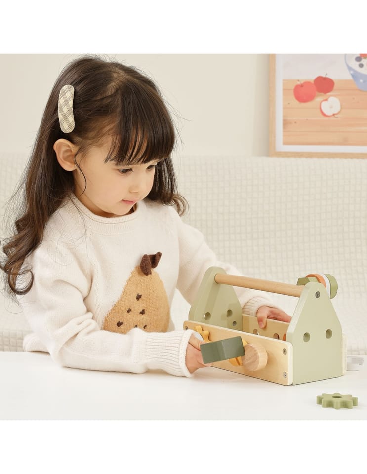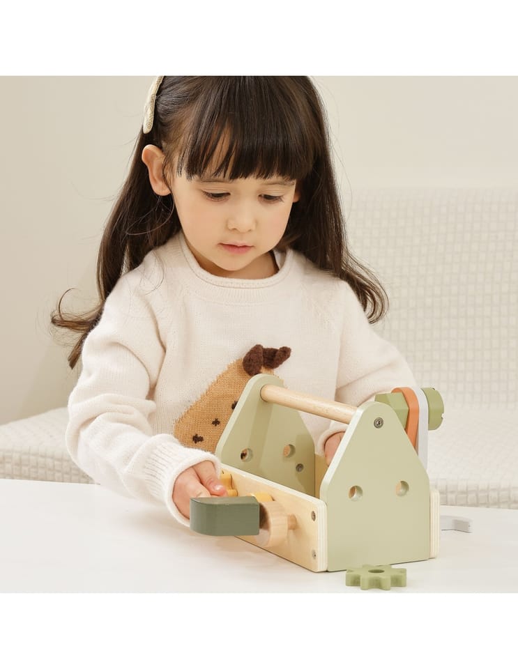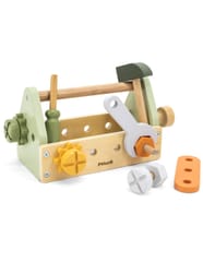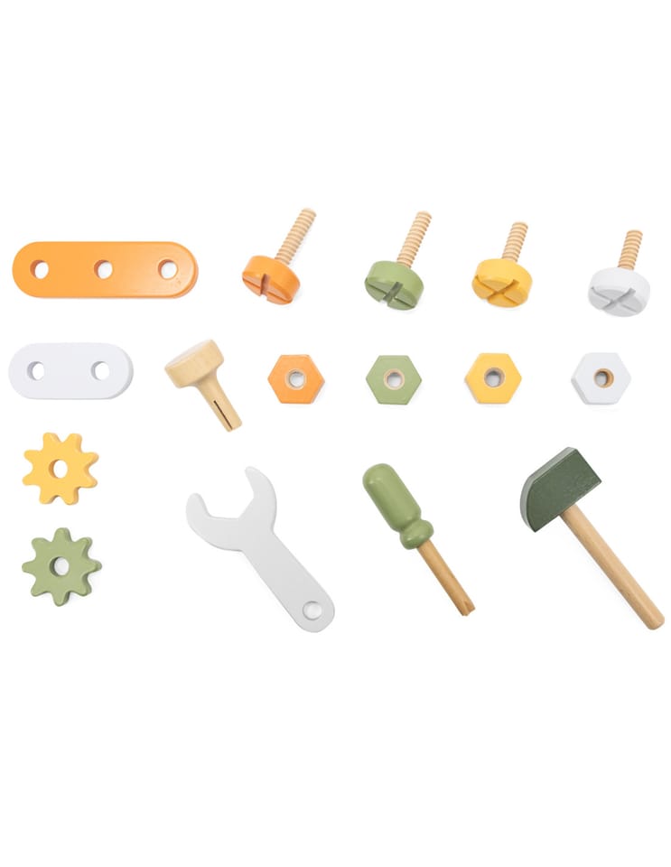 Jeżeli Twój maluch lubi majsterkować lub z zaciekawieniem przygląda się swojemu tacie podczas prac w domu, warsztacie czy też garażu to ten zestaw z pewnością jest dla niego. Skrzynka z narzędziami to nie tylko zabawka, ale również nowa przygoda dla Waszego dziecka. Dzięki narzędziom znajdującym się w skrzynce dziecko będzie miało możliwość rozwoju zdolności manualnych i rozwoju koordynacji ręka-oko. Zestaw uczy kreatywności oraz pobudza wyobraźnię.Skrzynka zawiera niezbędne narzędzia do majsterkowania takie jak: śrubokręt, młotek i płaski klucz. Znajdują się w niej również otwory, w które można wkręcać śrubki lub wbijać drewnianego gwoździa. Zestaw jest niezwykle poręczny i dostosowany do małych rączek dzieci.W skład zestawu wchodzi:- klucz- młotek- śrubokręt- 2 złączki- 2 zębatki- 4 nakrętki- 4 śrubki- gwóźdź - skrzynkaZabawka przeznaczona dla dzieci powyżej 3 roku życia.Cała seria zabawek POLAR BEAR została stworzona przez firmę VIGA, aby sprostać oczekiwaniom rodziców i dzieci w doskonaleniu procesu ich rozwoju poprzez zabawę.Całość wykonana została z drewna bukowego i pomalowana nietoksycznymi farbami w pastelowe barwy, które zadowolą każdego użytkownika i dadzą mnóstwo radości z zabawy.Naszym priorytetem jest bezpieczeństwo dzieci oraz najwyższa jakość zabawek, dbamy zatem o to, aby farby którymi malujemy nasze zabawki nie były toksyczne i spełniały normy bezpieczeństwa (EN71 i ASTM).Zabawka przeznaczona dla dzieci powyżej 18M+.DANE TECHNICZNE:Wymiary produktu:Dł. 185 mm x szer. 126 mm x wys. 114 mmWymiary opakowania:Dł. 216 mm x szer. 132 mm x wys. 121 mmOpisy