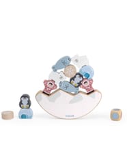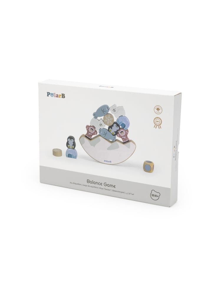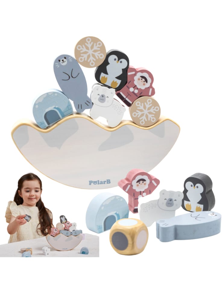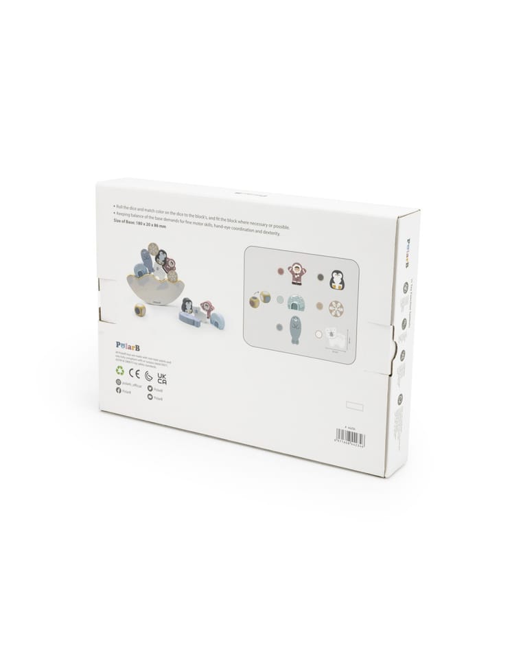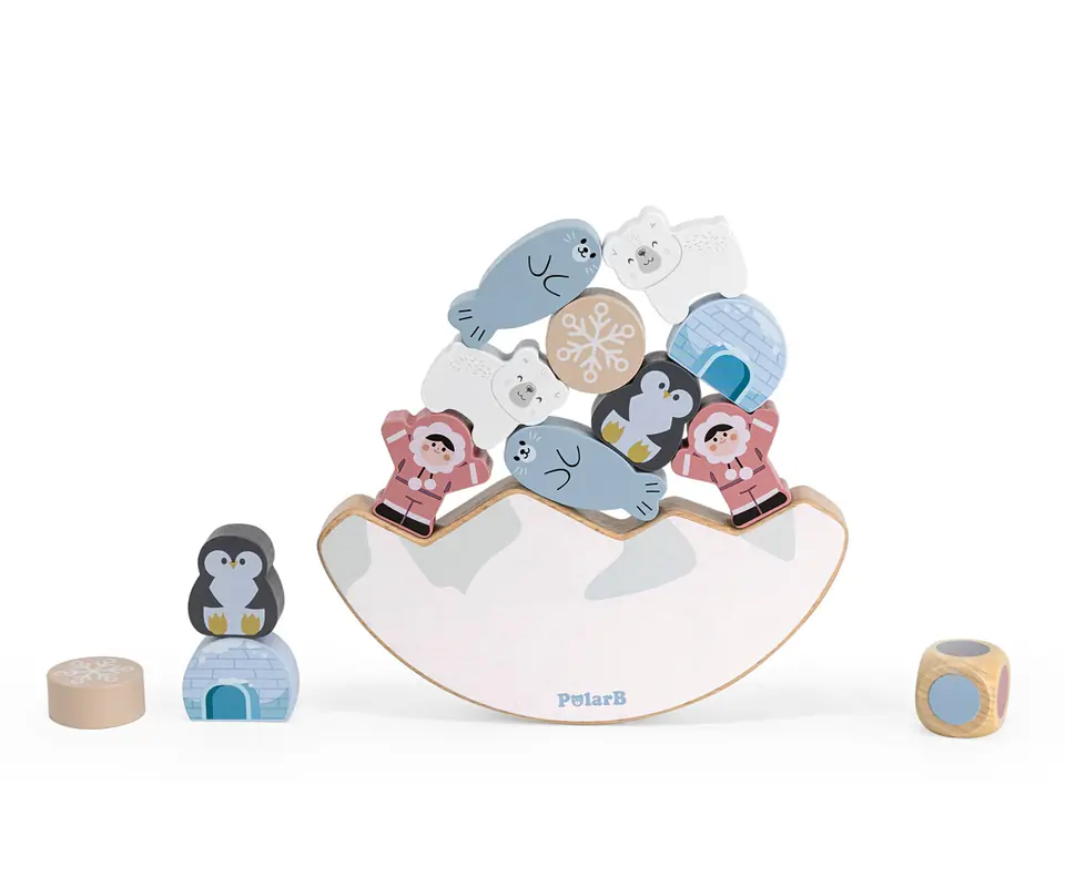 Przedstawiamy drewnianą zabawkę marki VIGA – balansująca układanka z serii PolarB.Drewniana gra balansująca o tematyce arktycznej zawiera 12 klocków, podstawę i kostkę. Należy dopasować klocek do innych ułożonych na podstawie tam gdzie jest to konieczne lub możliwe, aby utrzymać równowagę konstrukcji. Celem jest ułożenie pełnego stosu. Zabawka rozwija koordynację ręka-oko, umiejętności motoryczne, manualne, wyobraźnię przestrzenną i wyobraźnię planowania i budowania. Pomaga w zdobywaniu wiedzy przyrodniczej (zwierzęta i mieszkańcy stref polarnych).Klocki mają nieregularne kształty, układanie ich wymaga ostrożnych i zręcznych rąk.Całość wykonana została z drewna bukowego i pomalowana nietoksycznymi farbami o stonowanych barwach, które przyciągną wzrok oraz zachęcą do zabawy dając jednocześnie mnóstwo radości. Farby są w 100% bezpieczne, spełniają normy bezpieczeństwa EN71 i ASTM.Zestaw jest estetycznie zapakowany w kolorowe kartonowe pudełko, w sam raz na prezent.Zabawka przeznaczona dla dzieci powyżej 18. miesiąca życia.Cała seria zabawek PolarB została stworzona przez firmę VIGA aby sprostać oczekiwaniom rodziców i dzieci w doskonaleniu procesu ich rozwoju poprzez zabawę.DANE TECHNICZNE: Wymiar produktu: Dł. 180mm x wys. 20mm x szer. 175mm Wymiary opakowania: Dł. 290mm x wys. 40mm x szer. 210mm Waga: 0,5kgOpisy