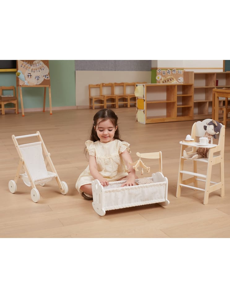 Przedstawiamy drewnianą zabawkę marki VIGA – krzesełko do karmienia z serii PolarB.Drewniane krzesełko dla lalek to elegancki mebel idealny do zabawy w odgrywanie ról. Umożliwia dzieciom zabawę w karmienie i opiekę nad swoimi ulubionymi lalkami lub misiami, wprowadzając elementy codziennych czynności do ich zabawy. Krzesełko jest estetycznie wykonane, stabilne i trwałe, co sprawia, że będzie pięknym dodatkiem do pokoju dziecka. Dziecko może ćwiczyć karmienie, przygotowywanie posiłków lub po prostu opiekowanie się swoim „podopiecznym”. Naśladowanie dorosłych w ich codziennych czynnościach rozwija empatię i troskę u dziecka. Przeznaczone dla lalek o wysokości do 38cm.Całość wykonana została z drewna bukowego i pomalowana nietoksycznymi farbami o stonowanych barwach, które przyciągną wzrok oraz zachęcą do zabawy dając jednocześnie mnóstwo radości. Farby są w 100% bezpieczne, spełniają normy bezpieczeństwa EN71 i ASTM.Zestaw zapakowany jest w kolorowe kartonowe pudełko, w sam raz na prezent.Zabawka przeznaczona dla dzieci powyżej 36. miesiąca życia.Cała seria zabawek PolarB została stworzona przez firmę VIGA, aby sprostać oczekiwaniom rodziców i dzieci w doskonaleniu procesu ich rozwoju poprzez zabawę.DANE TECHNICZNE: Wymiary produktu: Dł. 240 mm x wys. 515 mm x szer. 240 mmWymiary opakowania: Dł. 250 mm x wys. 490 mm x szer. 70 mmWaga netto: 1,1 kgWaga brutto: 1,3 kgOpisy