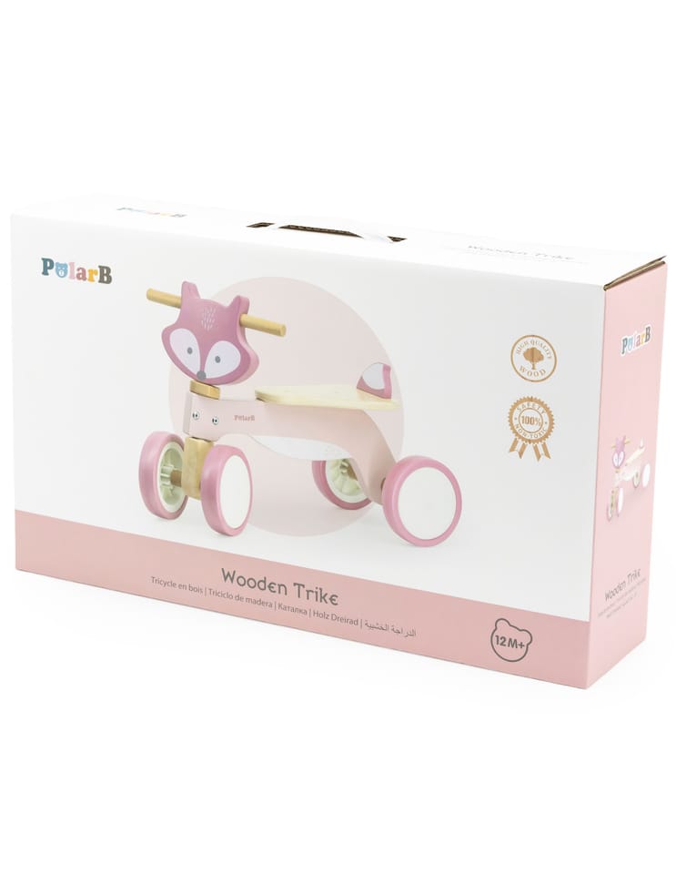 Wybór jeździka od marki Viga 44240 PolarB Drewniany jeździk – Lisek to doskonała decyzja, zwłaszcza jeśli chcesz, aby Twoje dziecko rozwijało swoje umiejętności motoryczne w bezpieczny i zabawny sposób. Doskonała propozycja dla dzieci, które dopiero zaczynają swoją przygodę z samodzielnym poruszaniem się na pojazdach. Wymienić należy główne cechy produktu: blokada skrętu kierownicy, zwiększa bezpieczeństwo malucha, ograniczając możliwość zbyt gwałtownego skręcania; dodatkowa tylna deska zapewnia dodatkową ochronę podczas jazdy; cztery opony z materiału gwarantują trwałość i stabilność nawet na różnych powierzchniach.Ten uroczy, drewniany jeździk w kształcie liska zapewnia maluchom bezpieczną zabawę dzięki solidnej konstrukcji z drewna oraz czterem wytrzymałym oponom EVA, które zapewniają płynność podczas jazdy.Zalety produktu:Bezpieczeństwo na pierwszym miejscu: jeździk został wyposażony w blokadę skrętu, co zapobiega nagłym i niekontrolowanym manewrom kierownicą, co jest szczególnie istotne dla początkujących małych użytkowników. Tylna deska chroni malucha przed przypadkowym zsunięciem się podczas jazdy, co dodatkowo zwiększa bezpieczeństwo. Opony z materiału EVA są nie tylko wytrzymałe, ale również miękkie, co zapewnia płynną i bezpieczną jazdę nawet po twardszych nawierzchniach.Solidna i ekologiczna konstrukcja: wykonany z wysokiej jakości drewna, jeździk nie tylko jest trwały, ale również przyjazny dla środowiska. Drewniane zabawki to zawsze dobry wybór, jeśli zależy Ci na zrównoważonym podejściu do zakupu zabawek.Rozwój umiejętności motorycznych: jazda na jeździku pozwala dziecku ćwiczyć równowagę, koordynację ruchową oraz wzmacniać mięśnie nóg. To doskonały trening przed nauką jazdy na rowerze. Wspomaga rozwój dużej motoryki, co jest kluczowe w rozwoju Dziecka w pierwszych latach życiaUroczy design: kształt liska na pewno przyciągnie uwagę malucha i zachęci do częstego korzystania z jeździka. Estetyka jest przyjazna dla dzieci, a stonowane kolory pasują do każdego otoczenia.Korzyści dla Dziecka:-Rozwija umiejętności motoryczne: jazda na jeździku pomaga dzieciom ćwiczyć równowagę, koordynację ruchową oraz wzmacniać mięśnie nóg.-Zachęca do aktywnego spędzania czasu, co sprzyja rozwojowi zdrowych nawyków ruchowych.-Dzięki kompaktowemu rozmiarowi, jeździk jest łatwy do przechowywania i przenoszenia, co sprawia, że może towarzyszyć dziecku zarówno w domu, jak i na spacerach na świeżym powietrzu.Jak korzystać z produktu:Maluch powinien usiąść na siedzisku, chwycić kierownicę obiema rękami, a stopy postawić płasko na ziemi. Dzięki odpowiedniemu rozmiarowi, dziecko bez problemu dosięgnie stopami do podłoża. Aby ruszyć do przodu, maluch powinien odpychać się stopami od ziemi, co będzie rozwijało jego siłę nóg. Dzięki stabilnej konstrukcji czterech kółek, dziecko może pewnie i bezpiecznie poruszać się w różnych kierunkach. Kierownica pozwala na łagodną kontrolę kierunku jazdy, a blokada skrętu zapewnia, że manewry są bezpieczne i stabilne, bez gwałtownych ruchów. Jeździk jest idealny zarówno do użytku wewnątrz domu, jak i na zewnątrz – na podwórku, tarasie czy w parku. Jednak zawsze warto upewnić się, że maluch bawi się w bezpiecznym otoczeniu, z dala od ruchliwych ulic.Wybierając Viga 44240 PolarB Drewniany jeździk - Lisek, dajesz swojemu dziecku nie tylko zabawkę, ale również narzędzie do rozwijania kluczowych umiejętności ruchowych i koordynacyjnych w atrakcyjnej i bezpiecznej formie. Elementy zabawki zostały zapakowane w estetyczny, kolorowe pudełko, dzięki temu estetycznemu opakowaniu zabawka jest idealna na prezent! Całość wykonana została z drewna bukowego i pomalowana nie toksycznymi farbami, które zadowolą każdego użytkownika i dadzą mnóstwo radości z zabawy.Naszym priorytetem jest bezpieczeństwo i jakość oferowanych produktów, dlatego dbamy o to aby farby, którymi malujemy nasze zabawki nie były toksyczne i spełniały normy bezpieczeństwa ( EN71 i ASTM). Zabawka przeznaczona dla dzieci powyżej 12 miesiąca życia.Wymiary produktu:Dł.530 mm x wys. 285 mm x szer. 380 mmWymiary opakowania:Dł.460 mm x wys. 110 mm x szer. 275 mmWaga netto: 2,6 kgWaga brutto: 2,9 kg Ilość kartonowa: 3 szt.Opisy