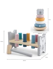 Całość wykonana została z drewna bukowego i pomalowana nietoksycznymi farbami o stonowanych barwach, które przyciągną wzrok oraz zachęcą do zabawy dając jednocześnie mnóstwo radości. Farby są w 100% bezpieczne, spełniają normy bezpieczeństwa EN71 i ASTM.