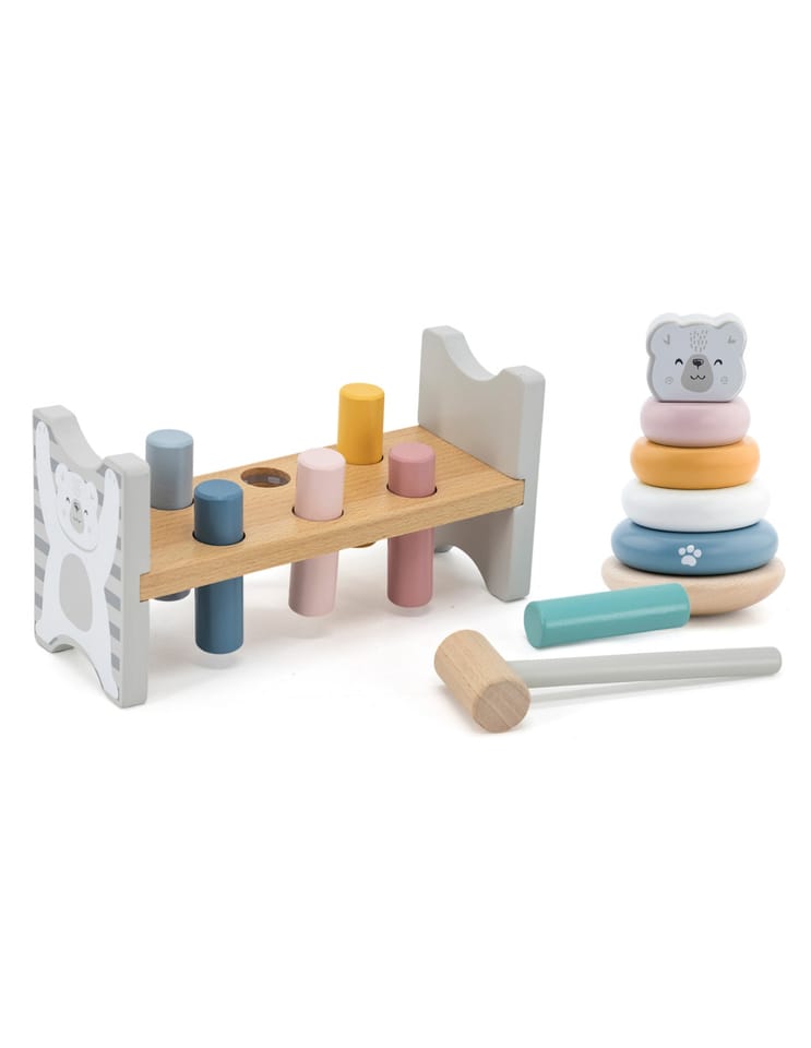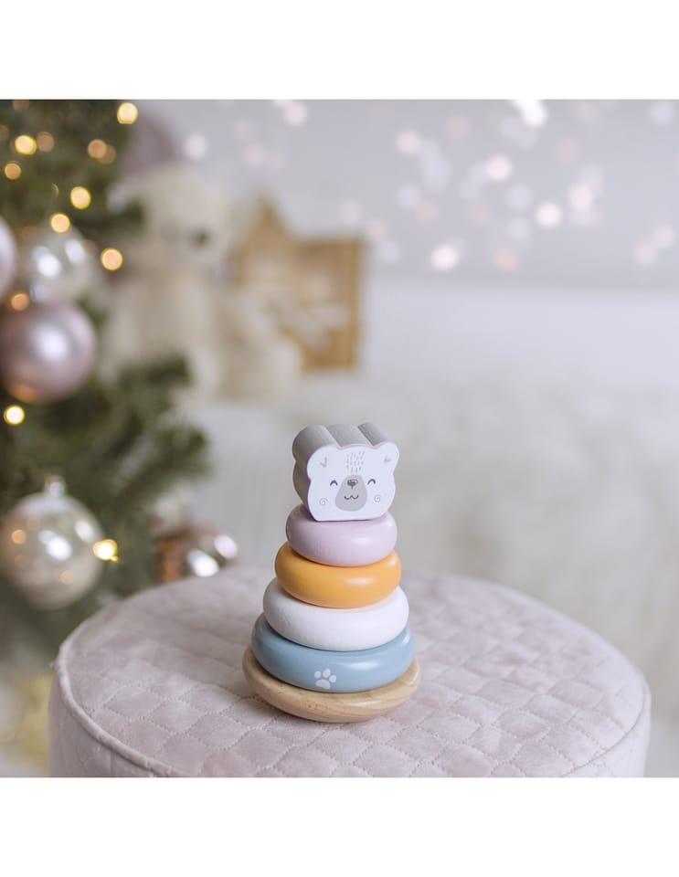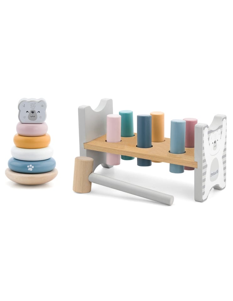 Przedstawiamy drewnianą zabawkę marki VIGA – zestaw przebijanka i piramidka z serii PolarB.
