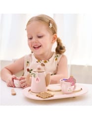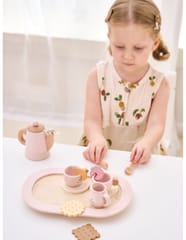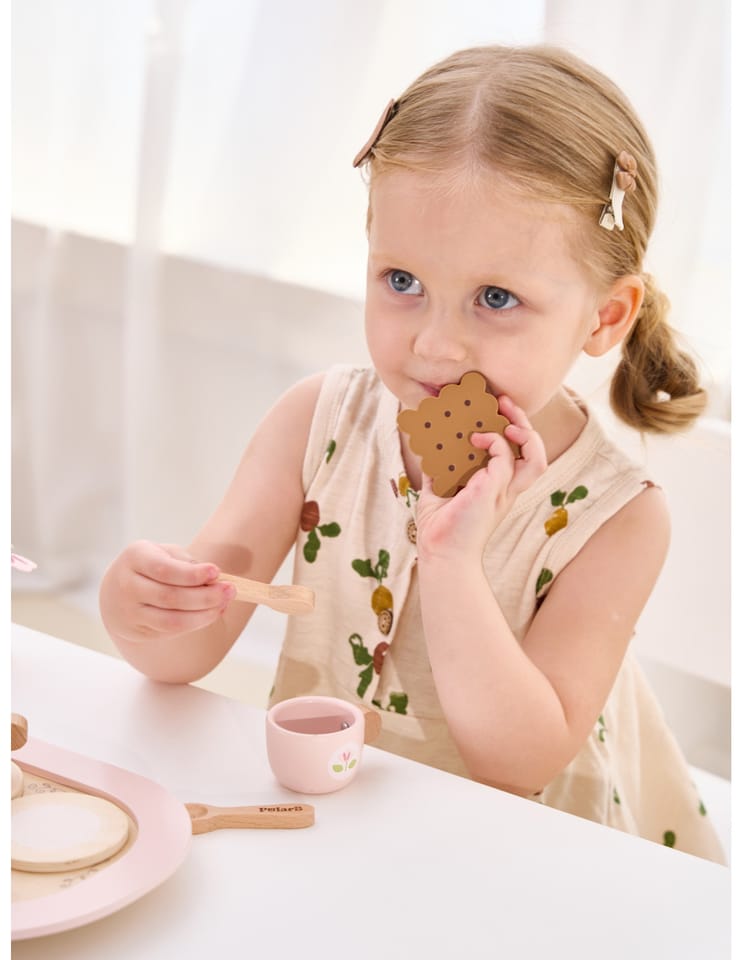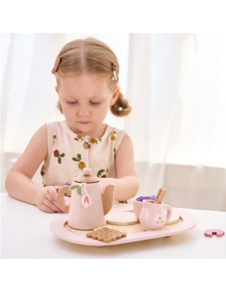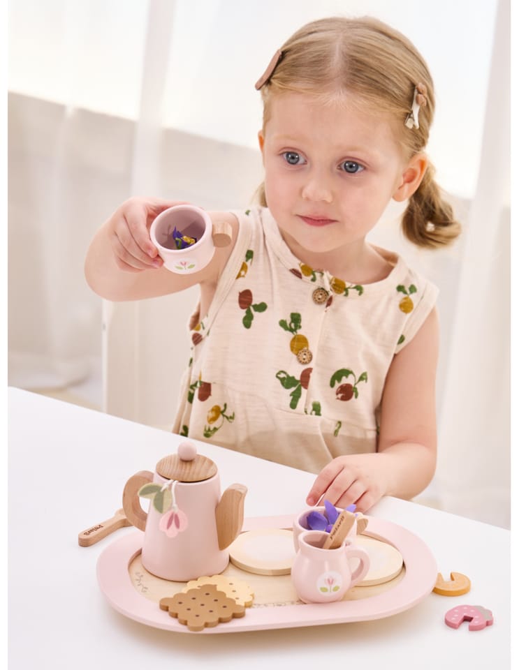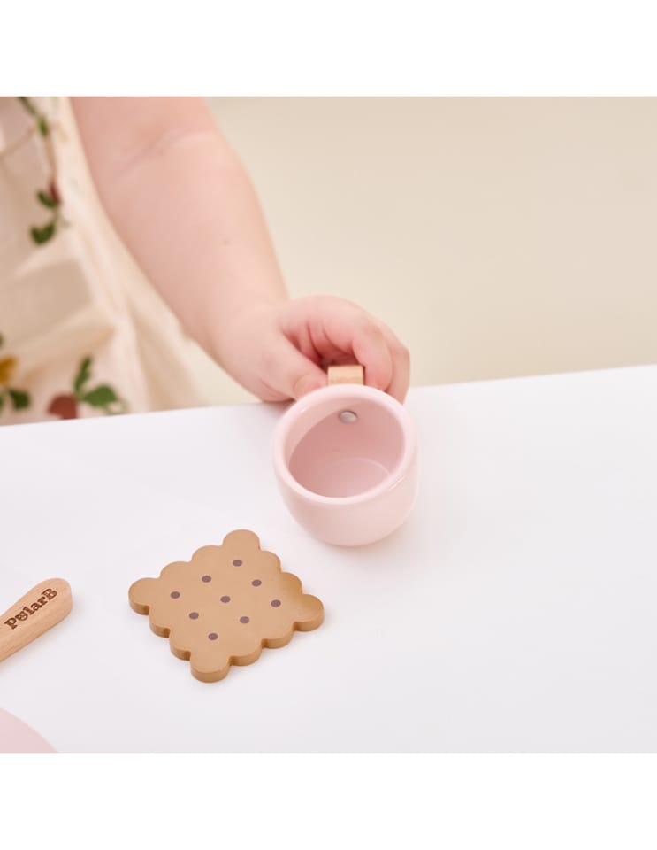 Zestaw Viga 44267 PolarB Drewniany zestaw do kawy i herbaty - pink jest prosty w użyciu i zapewnia wiele możliwości zabawy dla maluchów. Zestaw można również wykorzystywać jako narzędzie edukacyjne, wprowadzając maluchy do pojęć, takich jak smak, zapach czy różnice między herbatą a kawą. Viga 44267 PolarB Drewniany zestaw do kawy i herbaty - pink to uroczy zestaw do zabawy, który zachęca dzieci do kreatywnego odgrywania ról. Wykonany z wysokiej jakości drewna, zestaw oferuje realistyczne akcesoria do kawy, czy herbaty, w tym dzbanek, filiżanki, łyżeczki oraz różne dodatki, takie jak plasterki cytryny i herbatniki. Dzięki eleganckiemu designowi i pastelowej kolorystyce, ten zestaw idealnie nadaje się do organizowania zabawkowych przyjęć herbacianych, rozwijając jednocześnie wyobraźnię, umiejętności społeczne oraz koordynację ruchową dzieci.W zestawie:- Dzbanek do herbaty z pokrywką,- 2 filiżanki z podstawkami,- 2 łyżeczki i 2 torebki herbaty,- Dzbanek na mleko,- Plasterek cytryny i plasterek truskawki,- 2 ciasteczka,- Taca do serwowania.Zalety produktu:Rozwój wyobraźni: zestaw zachęca dzieci do kreatywnej zabawy w odgrywanie ról, co wspomaga rozwój wyobraźni i zdolności do symulowania sytuacji z codziennego życia, takich jak organizowanie przyjęcia herbacianego.Promowanie umiejętności społecznych: dzięki możliwości zabawy z innymi, zestaw uczy maluchy współdziałania, dzielenia się oraz uprzejmego zachowania podczas interakcji społecznych, co jest kluczowe dla ich rozwoju społeczno-emocjonalnego.Bezpieczne materiały: zestaw wykonany jest z bezpiecznego drewna, bez ostrych krawędzi, co sprawia, że jest odpowiedni dla najmłodszych użytkowników.Estetyczny design: elegancka, pastelowa kolorystyka i staranne wykonanie sprawiają, że zestaw jest atrakcyjny wizualnie i doskonale komponuje się z innymi drewnianymi zabawkami w stylu Montessori.Wieloelementowy zestaw: dziecko ma do dyspozycji bogaty zestaw akcesoriów – dzbanek, filiżanki, herbatniki, łyżeczki i dodatki takie jak plasterek cytryny czy truskawki – które wzbogacają zabawę, oferując różne możliwości tworzenia własnych scenariuszy.Wzmacnianie koordynacji ruchowej: używanie łyżeczek, nalewanie z dzbanka oraz umieszczanie filiżanek na tacy wspomaga rozwój koordynacji ręka-oko i precyzyjnych umiejętności manualnych.Korzyści dla Dziecka:- Zestaw doskonale wspiera rozwój kreatywnego odgrywania ról, co pomaga dzieciom w wyrażaniu emocji i rozwijaniu komunikacji.- Grając w przyjęcie herbaciane, dziecko może rozwijać umiejętności społeczne, takie jak dzielenie się, współpraca i etykieta przy stole.- Zabawa z różnymi elementami zestawu, takimi jak filiżanki, dzbanek czy ciasteczka, sprzyja rozwojowi motoryki małej, precyzji i koordynacji ręka-oko.Jak korzystać z produktu:Zorganizowanie przyjęcia herbacianego: dziecko może zaprosić swoje pluszaki, lalki lub nawet członków rodziny na "herbatkę". Może przygotować herbatę, dodać plasterek cytryny lub truskawki do filiżanki, a następnie podać napoje i ciasteczka na tacy. Ćwiczenie kreatywnej zabawy: Dzieci mogą naśladować dorosłych, przygotowując kawę lub herbatę. Będą udawać, że nalewają napój z dzbanka, dodają mleko z dzbanuszka i mieszają łyżeczką. Rozwój umiejętności społecznych: Podczas zabawy w przyjęcie herbaciane maluchy uczą się zasad gościnności i współpracy. Mogą ćwiczyć uprzejme zachowania, takie jak dzielenie się, czekanie na swoją kolej oraz nawiązywanie rozmów. Nauka przez zabawę: dzieci mogą bawić się samodzielnie lub z innymi, rozwijając przy tym umiejętności komunikacji i odgrywania ról, co wspomaga ich wyobraźnię i rozwój emocjonalny.Wybierz ten zestaw od Viga, który oferuje nie tylko świetną zabawę, ale także wiele korzyści rozwojowych, które czynią go wartościowym dodatkiem do kolekcji zabawek każdego dziecka. Elementy zabawki zostały zapakowane w estetyczny, kolorowe pudełko z uchwytem do przenoszenia, dzięki temu estetycznemu opakowaniu zabawka jest idealna na prezent! Całość wykonana została z drewna bukowego i pomalowana farbami, które zadowolą każdego użytkownika i dadzą mnóstwo radości z zabawy.Naszym priorytetem jest bezpieczeństwo i jakość oferowanych produktów, dlatego dbamy o to aby farby, którymi malujemy nasze zabawki spełniały normy bezpieczeństwa ( EN71 i ASTM). Zabawka przeznaczona dla dzieci powyżej 3 roku życia.Wymiary produktu:Dł.265 mm x wys. 175 mm x szer. 23 mmWymiary opakowania:Dł.272 mm x wys. 93 mm x szer. 180 mmWaga netto: 0,50 kg Waga brutto: 0,60 kgIlość kartonowa: 8 szt.Opisy