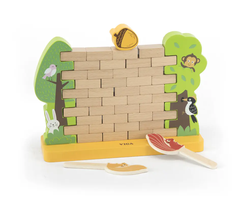 Zręcznościowa gra dla 2 osób polegająca na wysuwaniu cegiełek z muru za pomocą dedykowanych „łopatek” tak długo, dopóki nie spadnie z niego umieszczony wcześniej drewniany żołędź.