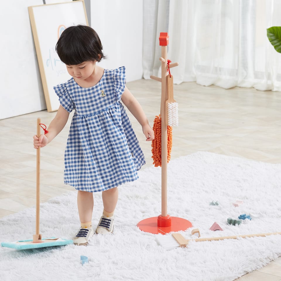 Każdy z nas wie że w domu są takie obowiązki jak sprzątanie. Zazwyczaj kojarzy się nam i dzieciom dość negatywnie, jako męczące zajęcie, czy nudny obowiązek. Pretend Play to kolorowy zestaw do czyszczenia dla dzieci, który wygląda jak prawdziwe narzędzia do sprzątania. Dzięki temu zestawowi do sprzątania dziecko nauczy się sposobu używania poszczególnych przedmiotów.