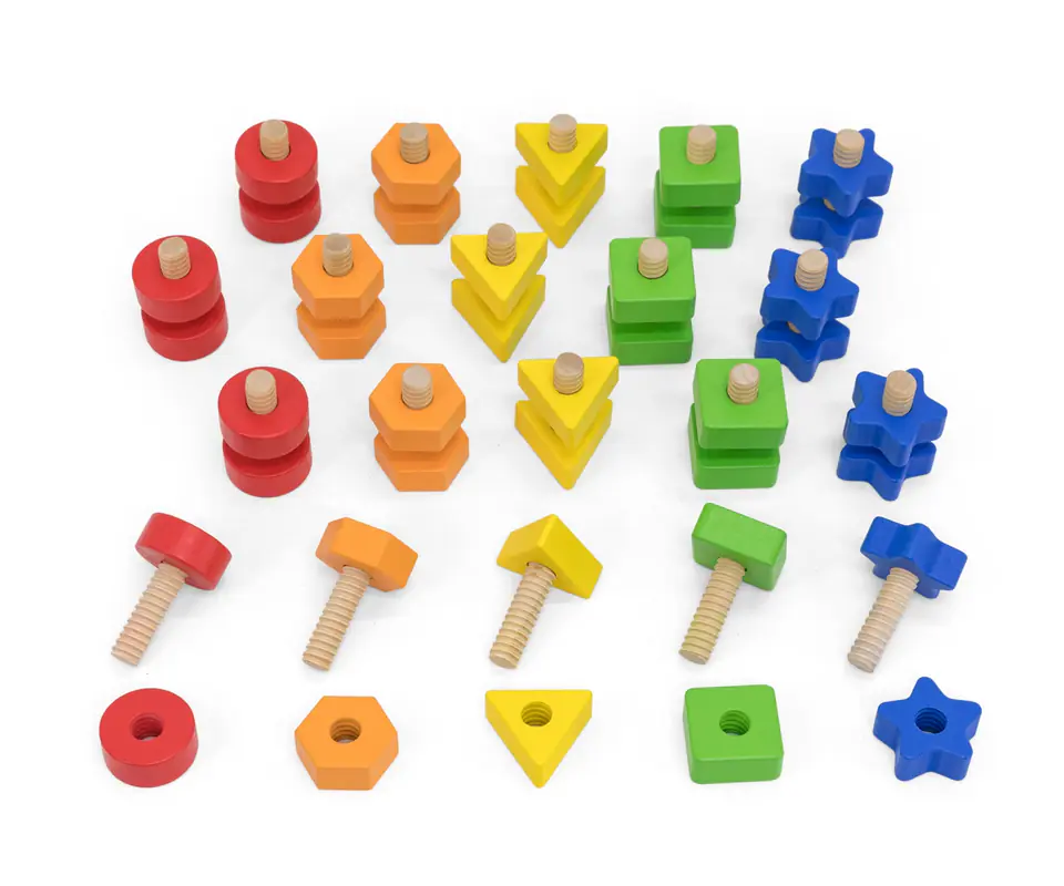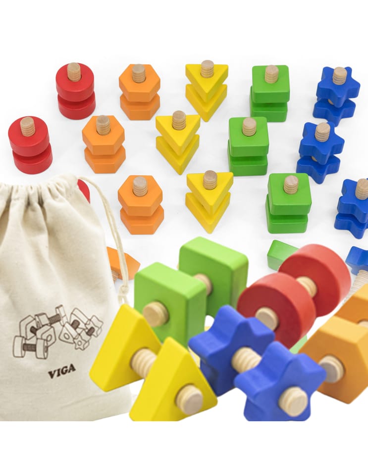 Ten kolorowy zestaw sensoryczny od firmy VIGA to kreatywna zabawka dla Twojego dziecka, dająca dużo frajdy i długotrwałą zabawę, z której twoje dziecko będzie korzystać przez lata. VIGA zestaw 40 elementów nakrętki i śruby zawiera 20 par nakrętek i 20 par śrub w 5 jaskrawych kolorach i kształtach. Zabawa polega na łączeniu i rozłączaniu tych kolorowych kształtów, dziecko uczy się je poprawnie nazywać. To świetna zabawa podczas mieszania i dopasowywania! Promuj liczenie, sortowanie i umiejętności motoryczne oraz zachęcaj do rozwiązywania problemów i konstruktywnej zabawy. Sensoryczne nakrętki i śruby od marki VIGA to zabawka rozwijająca analityczny sposób myślenia, zdolności manualne oraz ćwiczy cierpliwość i wymaga od maluszka zaangażowania.W zestawie bawełniana torba ułatwiająca przechowywanie
