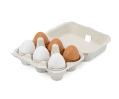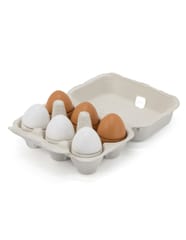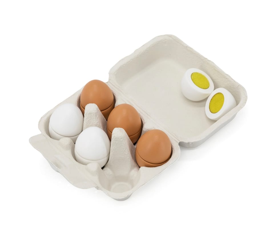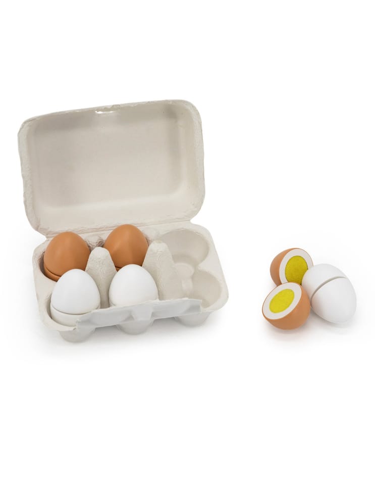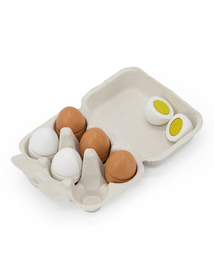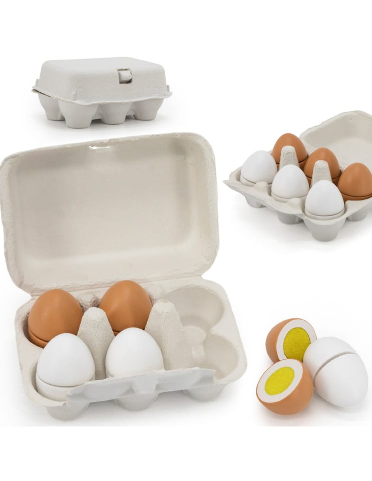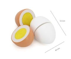 Prezentujemy kolejną ciekawą zabawkę drewnianą VIGA.Viga 44752 Drewniany zestaw do krojenia 6 jajek w wytłoczce, jajka to jeden z podstawowych produktów spożywczych.Dzięki takiej zabawce dziecko może naśladować dorosłych i rozwijać zainteresowania np. kulinarne. Możne też bawić się w przygotowywanie posiłków dla innych. Nie ma obawy, że takie jajka się potłuką, czy „zepsują” więc można bawić się nimi bez końca.Zestaw przydatny jako wyposażenie dziecięcego sklepu, czy mini kuchni.W skład zestawu wchodzi 6 drewnianych jajek (3 białe i 3 brązowe) w wytłoczce.Dzięki estetycznemu opakowaniu zestaw jest idealny na prezent!Całość wykonana została z drewna bukowego i pomalowana nietoksycznymi farbami o żywych barwach, które przyciągną wzrok oraz zachęcą do zabawy dając jednocześnie mnóstwo radości z zabawy.Naszym priorytetem jest bezpieczeństwo dzieci oraz najwyższa jakość zabawek, dbamy zatem o to, aby farby którymi malujemy nasze zabawki nie były toksyczne i spełniały normy bezpieczeństwa (EN71 i ASTM).Zabawka przeznaczona dla dzieci od 3 lat+.Wymiary produktu: 40 mm średnica jajka x 53 mm długośćWymiary całego produktu: 150 x 105 x 70 mmDeklaracja zgodności CEINFORMACJE NA TEMAT BEZPIECZEŃSTWA PRODUKTUViga 44752 Drewniany zestaw do krojenia 6 jajek w wytłoczceZabawka przeznaczona dla dzieci w wieku od 3 lat.OSTRZEŻENIE! Nieodpowiednie dla dzieci w wieku poniżej 3 lat. Zawiera małe elementy. Ryzyko zadławienia.PRODUCENT:Ningbo Viga International Co., Ltd.20F, 588 CANHGAI ROAD315040, NINGBO, Chinye-mail: sales@vigatoys.comIMPORTER:PM INVESTMENT GROUP Napert, Soszyński Sp.k.Podkowy 1804-937 Warszawa, Polskaemail: info@pminvestment.plINSTRUKCJA OBSŁUGI. WAŻNE! PRZECZYTAJ UWAŻNIE I ZACHOWAJ DO PÓŹNIEJSZEGO STOSOWANIA.OSTRZEŻENIA! Przed użyciem zabawki usuń opakowanie. Nie używać zabawki jeśli jakikolwiek jej element jest uszkodzony lub go brakuje. Czyszczenie: Przetrzyj wilgotną ściereczką lub szczotką o miękkim włosiu zwilżoną w wodzie z mydłem. Nie mocz drewna w wodzie. Po umyciu wytrzyj do sucha czystą ściereczką.