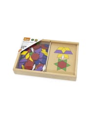 Geometryczna mozaika to gra logiczna polegająca na układaniu 148 kolorowych drewnianych figur geometrycznych według 10 przykładowych wzorów, dzięki czemu trzylatek szybciej uczy się rozpoznawać kształty i kolory oraz rozwija swoje zdolności manualne. Liczba układanek nie kończy się na zaproponowanych dziesięciu wzorach – jest praktycznie nieograniczona. Dziecko może samo tworzyć własne mozaiki, co dodatkowo wpływa na rozwój kreatywności i wyobraźni.