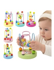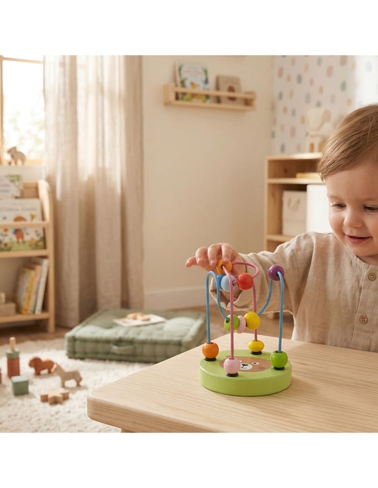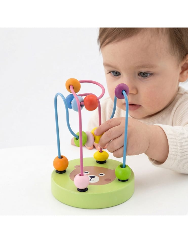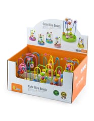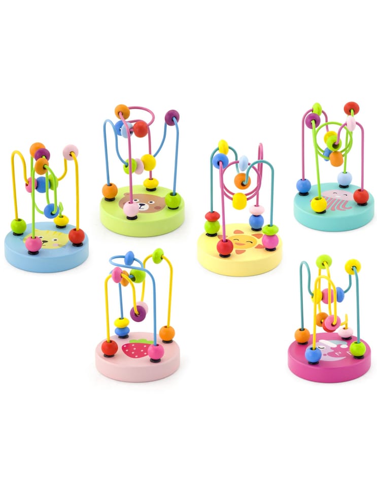 Edukacyjny mini labirynt/przeplatanka 3D od marki Viga to idealna zabawka dla maluszków.Na 2 metalowych pętlach umieszczonych jest 12 kolorowych koralików, które dziecko może przesuwać w dowolny sposób, ćwicząc przy tym precyzję ruchów palców i dłoni.Dodatkowo, na drewnianej podstawie labiryntu znajduje się jeden z 6 wizerunków, tj. kotek, miś, ośmiorniczka, słonko, księżyc i truskawka.