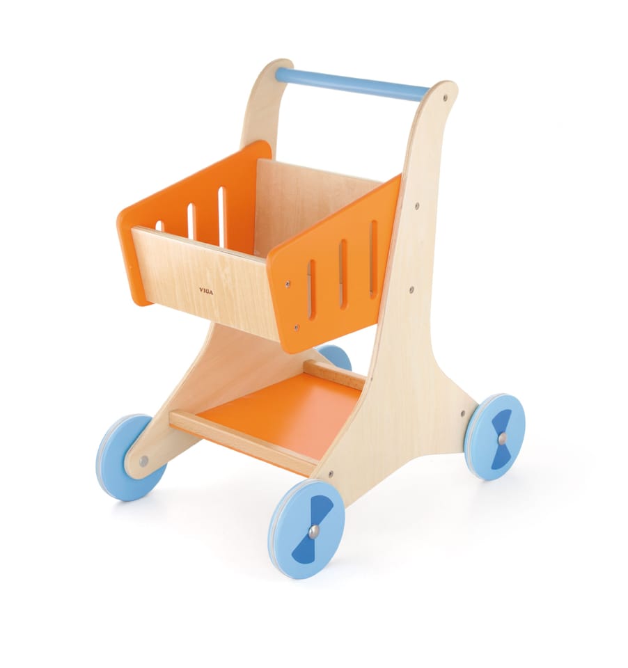 Drewniany wózek sklepowy od firmy VIGA to przeuroczy chodzik dla aktywnego, stawiającego pierwsze kroki dziecka. Zabawka ta zapewni twojemu dziecku wiele radości przy nauce chodzenia. Gdy już Maluszek będzie pewnie stawiał kroki zabawka uzupełni i urozmaici zabawę. Dzieci uwielbiają bawić się naśladując mamę i tatę…
