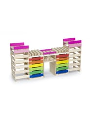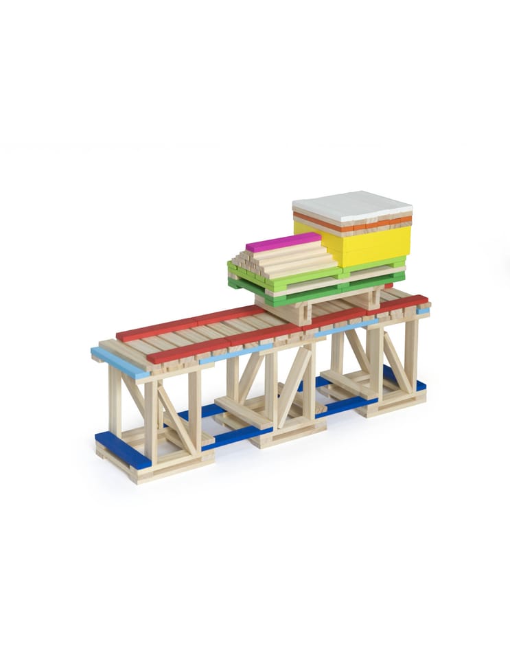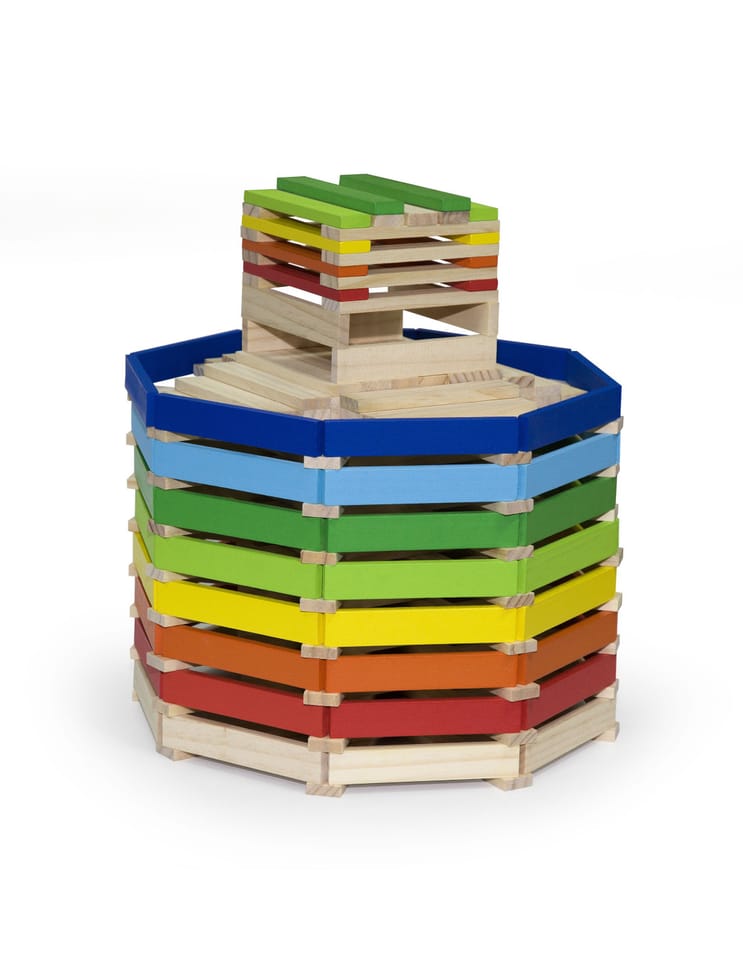 Całość wykonana została z drewna bukowego i pomalowana nietoksycznymi farbami o żywych barwach, które przyciągną wzrok oraz zachęcą do zabawy dając jednocześnie mnóstwo radości z zabawy.