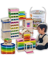 Bawiąc się klockami maluszek kształtuje precyzję ruchów paluszków i rączek, umiejętności manualne i planowania oraz poprawia koordynację wzrokowo-ruchową. Klocki zachęcają do logicznego myślenia oraz pozwalają na kreatywną zabawę.